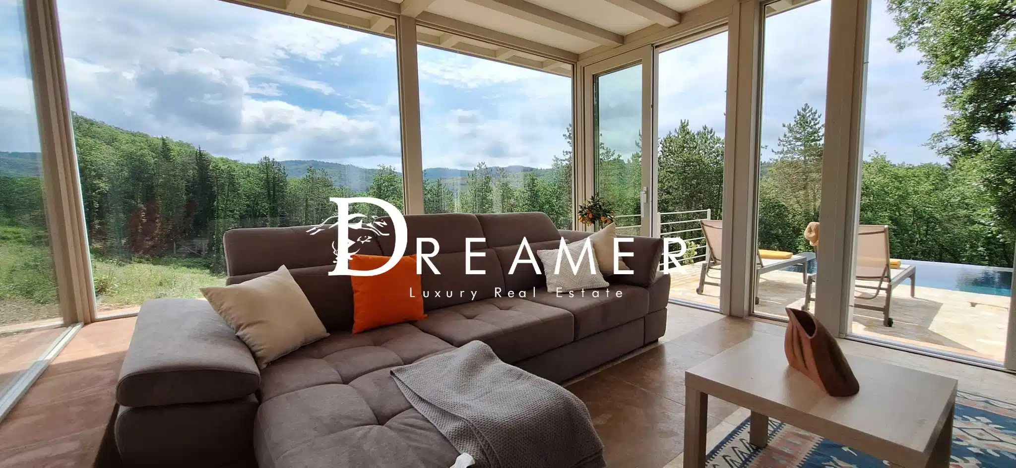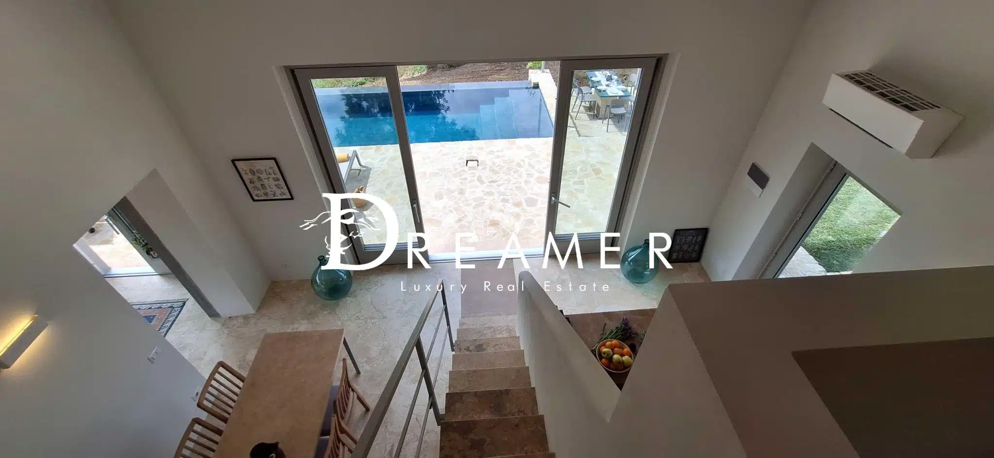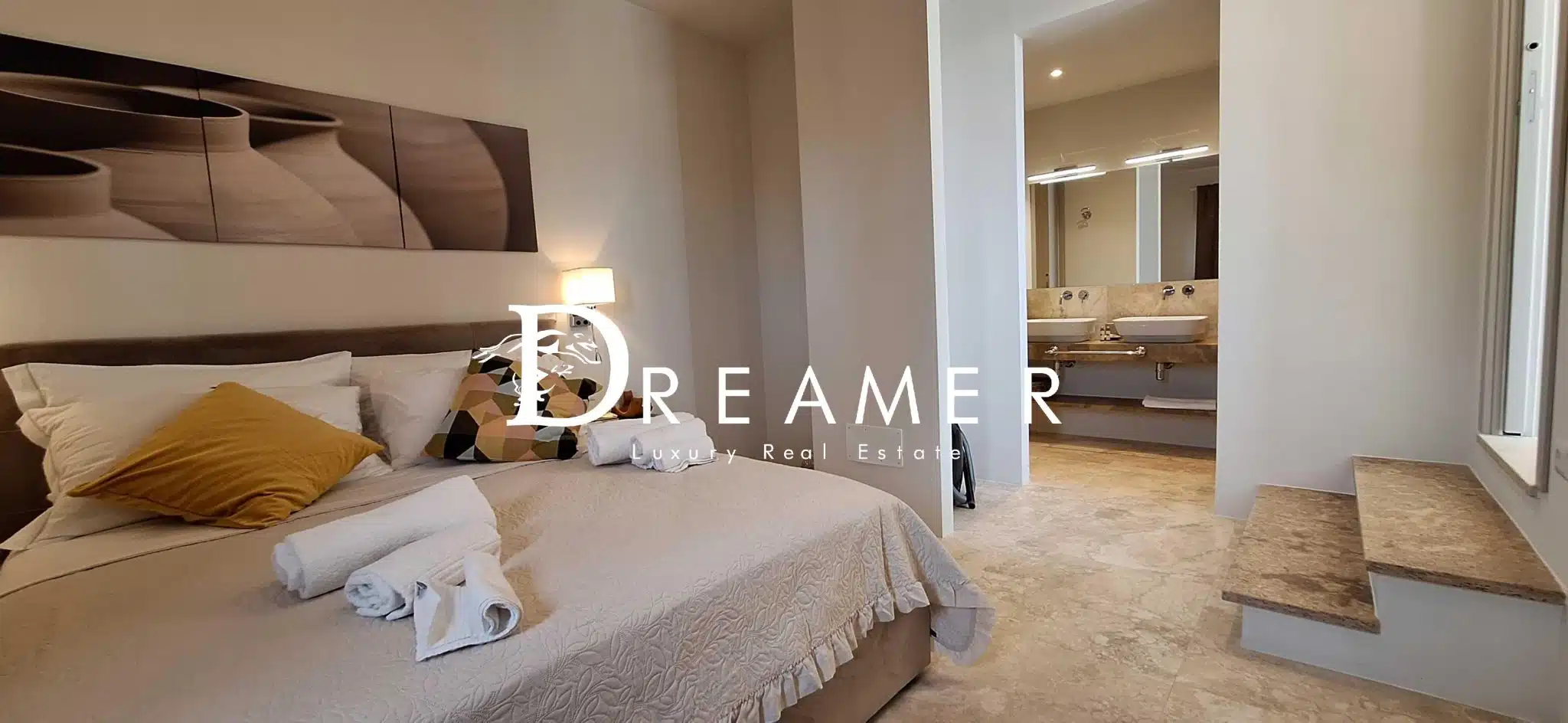 The main villa, approximately 520 square meters, will be built in the same contemporary style as the guesthouse and can be customized to the buyer’s needs. The project includes large living spaces with panoramic views, a kitchen with pantry, indoor and outdoor dining rooms. Then a spa area, a billiards room, and four bedrooms with private bathrooms. The villa will also be equipped with solar panels and state-of-the-art home automation.
