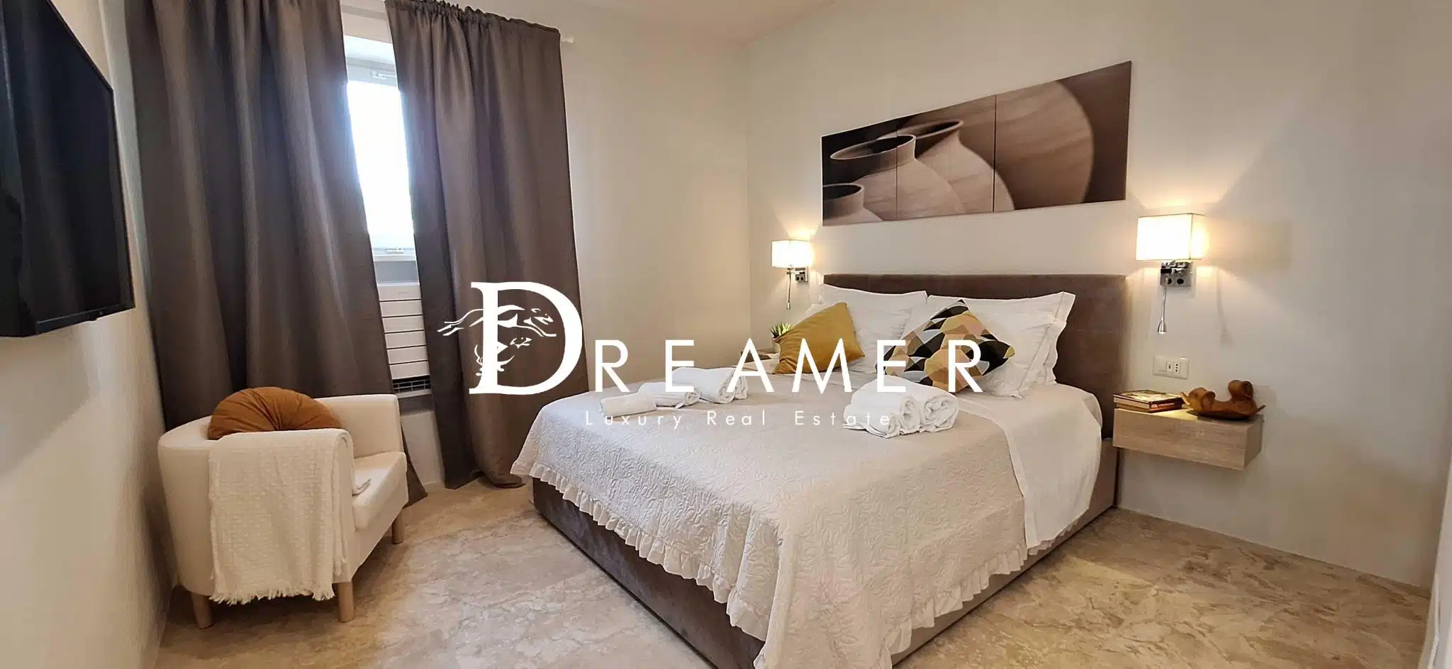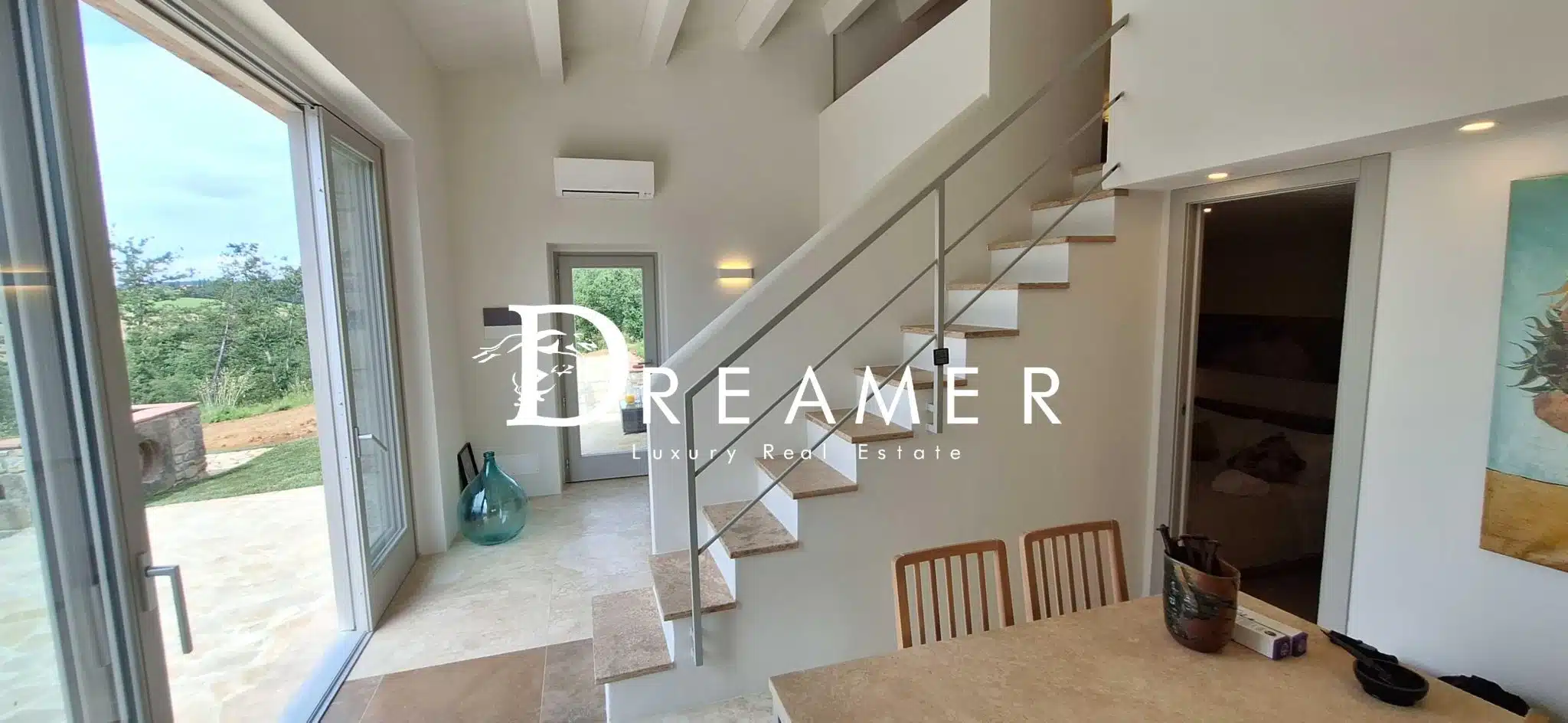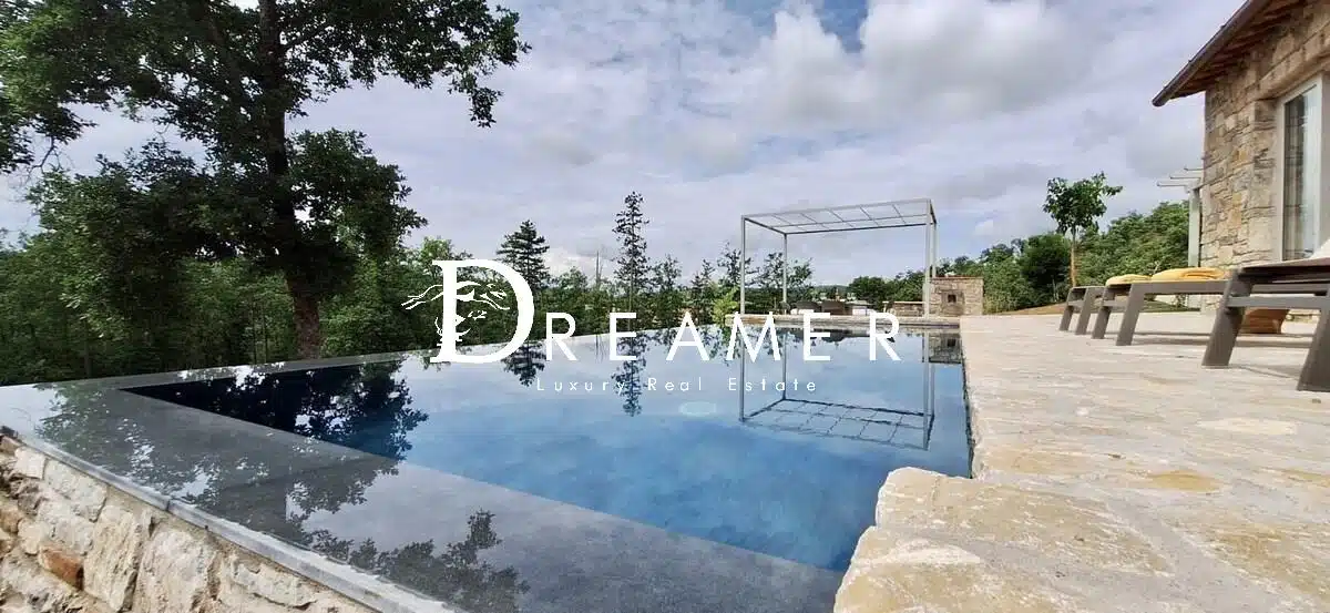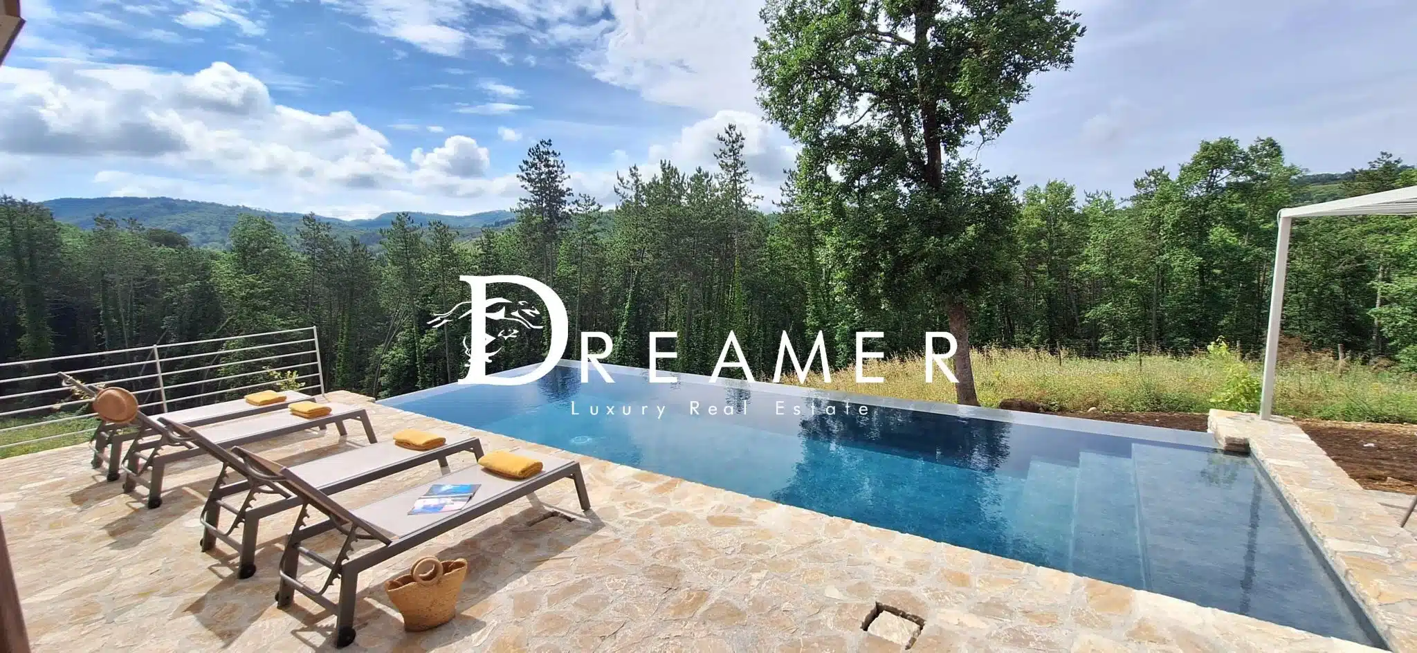 The main villa, approximately 520 square meters, will be built in the same contemporary style as the guesthouse and can be customized to the buyer’s needs. The project includes large living spaces with panoramic views, a kitchen with pantry, indoor and outdoor dining rooms. Then a spa area, a billiards room, and four bedrooms with private bathrooms. The villa will also be equipped with solar panels and state-of-the-art home automation.
