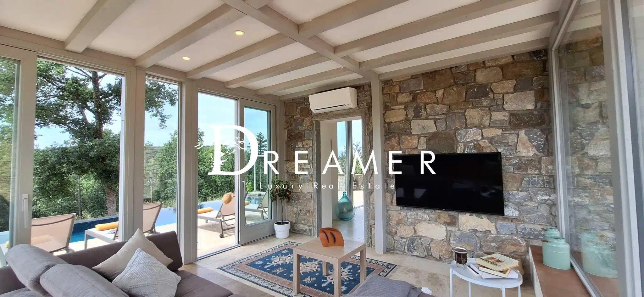 Air Conditioning, Dependance, Garden, Land, Parking, Solar panels, Swimming pool, Terrace, View