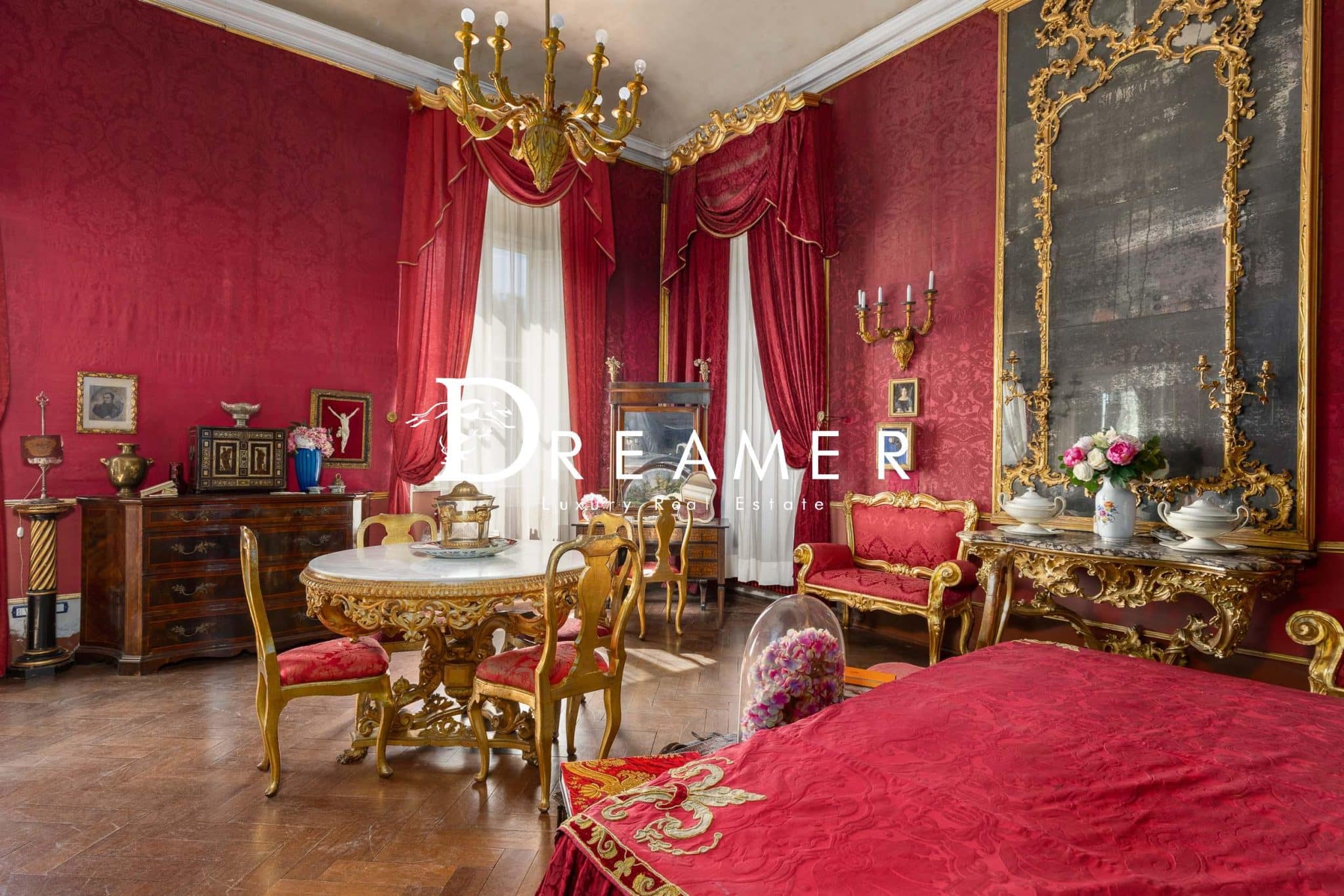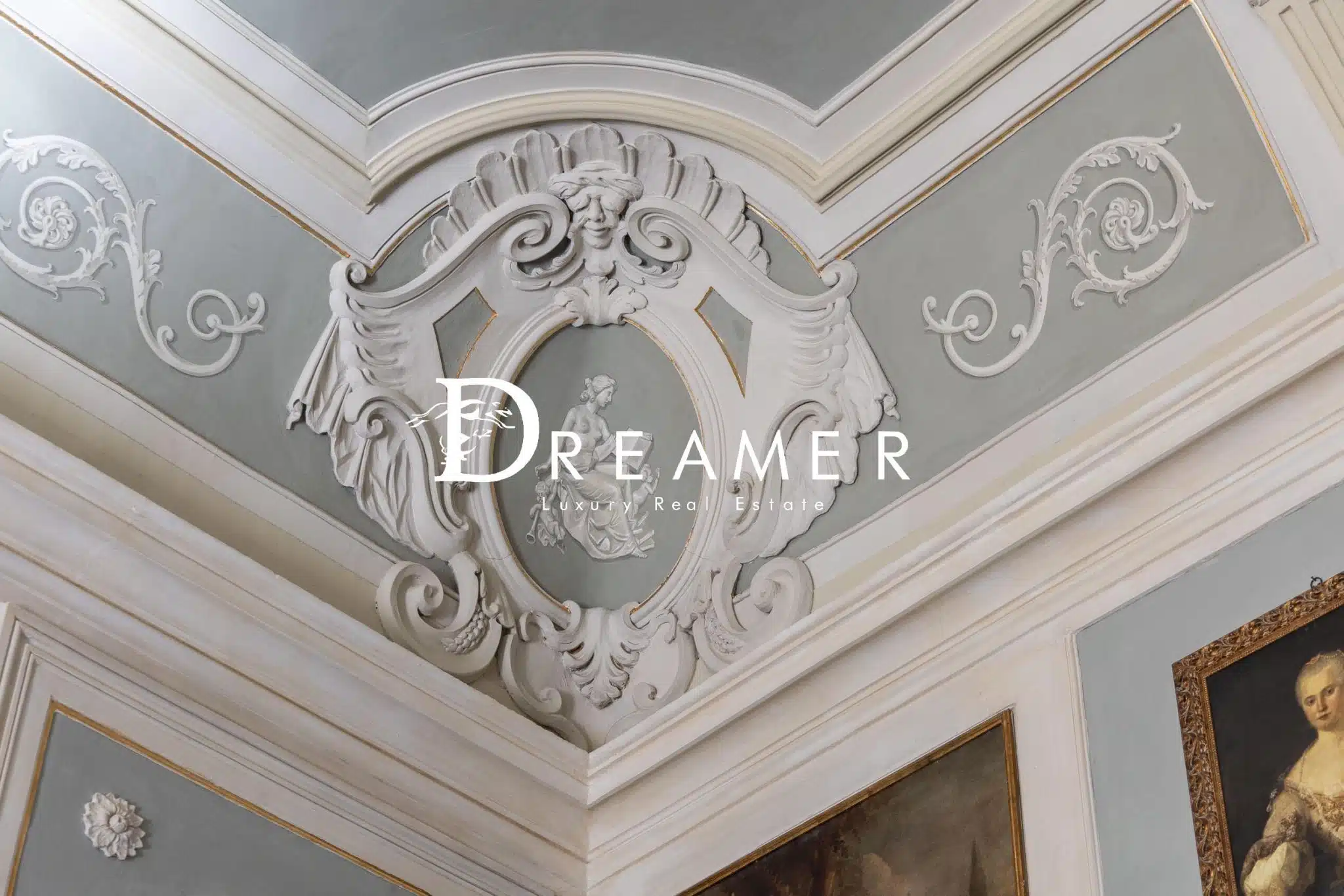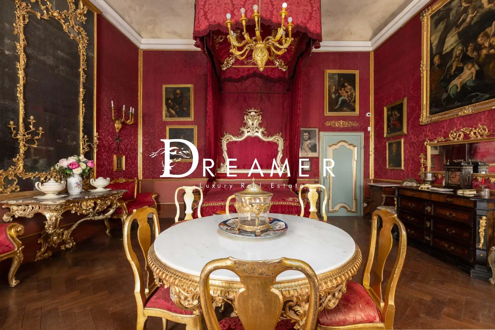 Spanning over 3,200 square meters, the property offers a rare expression of 18th-century magnificence. The heart of the villa is its extraordinary double-height salon at 125 square meters, the largest in the Lucca area, soaring 8 meters high, adorned with masterful stuccoes by Sebastiano Puccini and dominated by two monumental canvases by Pier Dandini – The Battle of Ponte Milvio and The Rape of the Sabines. Evocative of the grandeur of Europe’s great courts, this room sets the tone for the villa’s opulent sequence of salons and chambers, including the celebrated “Red Room,” lined with silk and furnished by skilled 18th-century artisans.