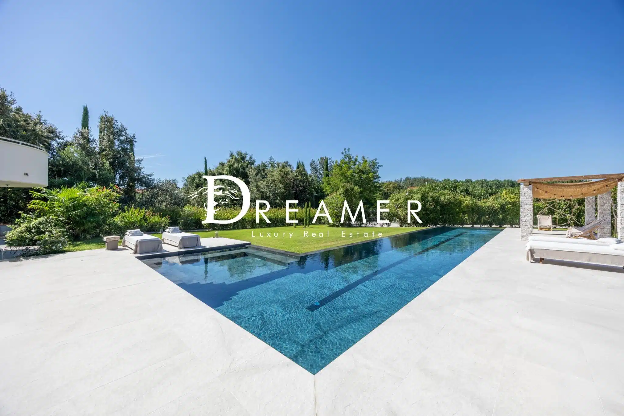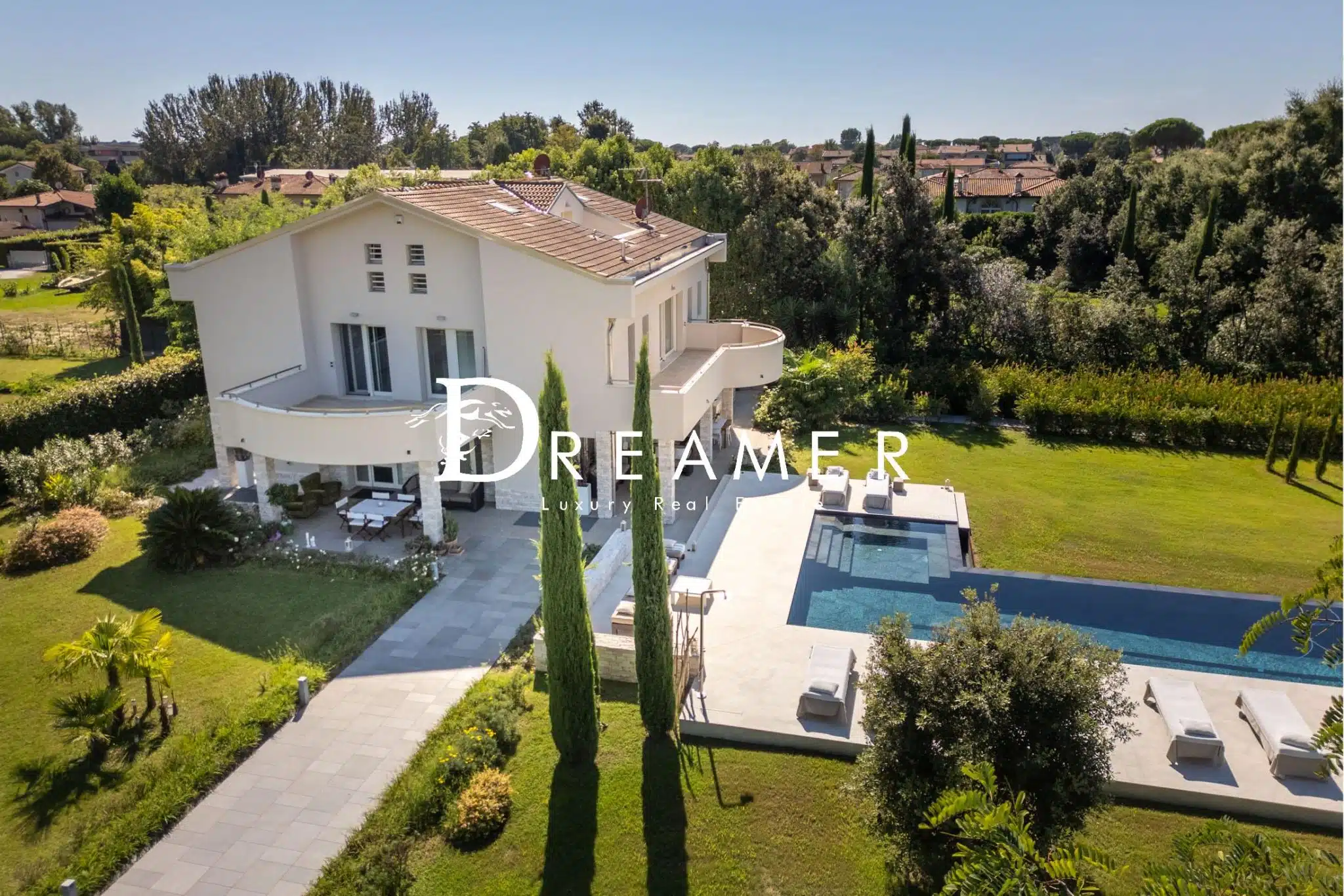 Stunning villa with pool and garden for sale in Forte dei Marmi, just minutes from the elegant boutiques of the town center and the most renowned beach resorts. The recently built property is spread over four levels and is currently divided into two residential units by a plasterboard wall, easily removable for those seeking a single, spacious residence. The total area is approximately 540 square meters, with 15 bedrooms and 15 bathrooms, plus a splendid 4,000 sqm garden.