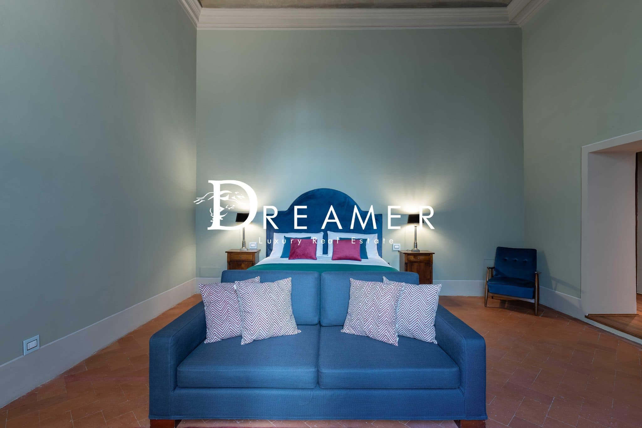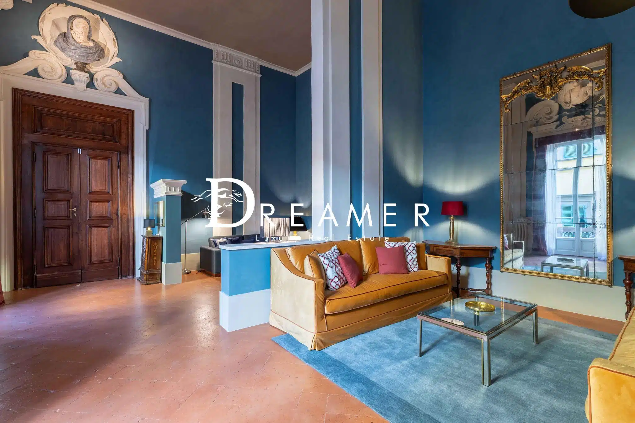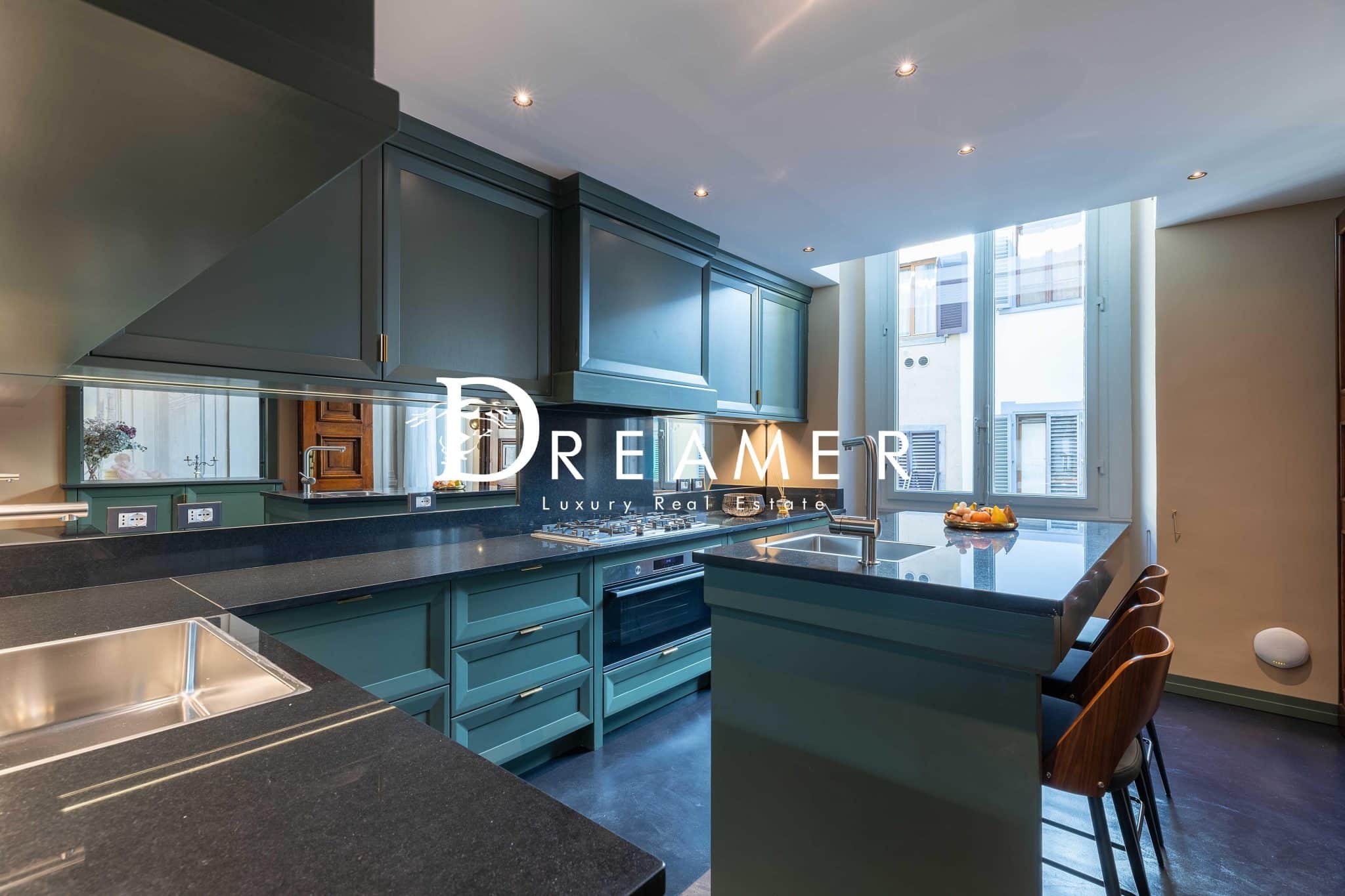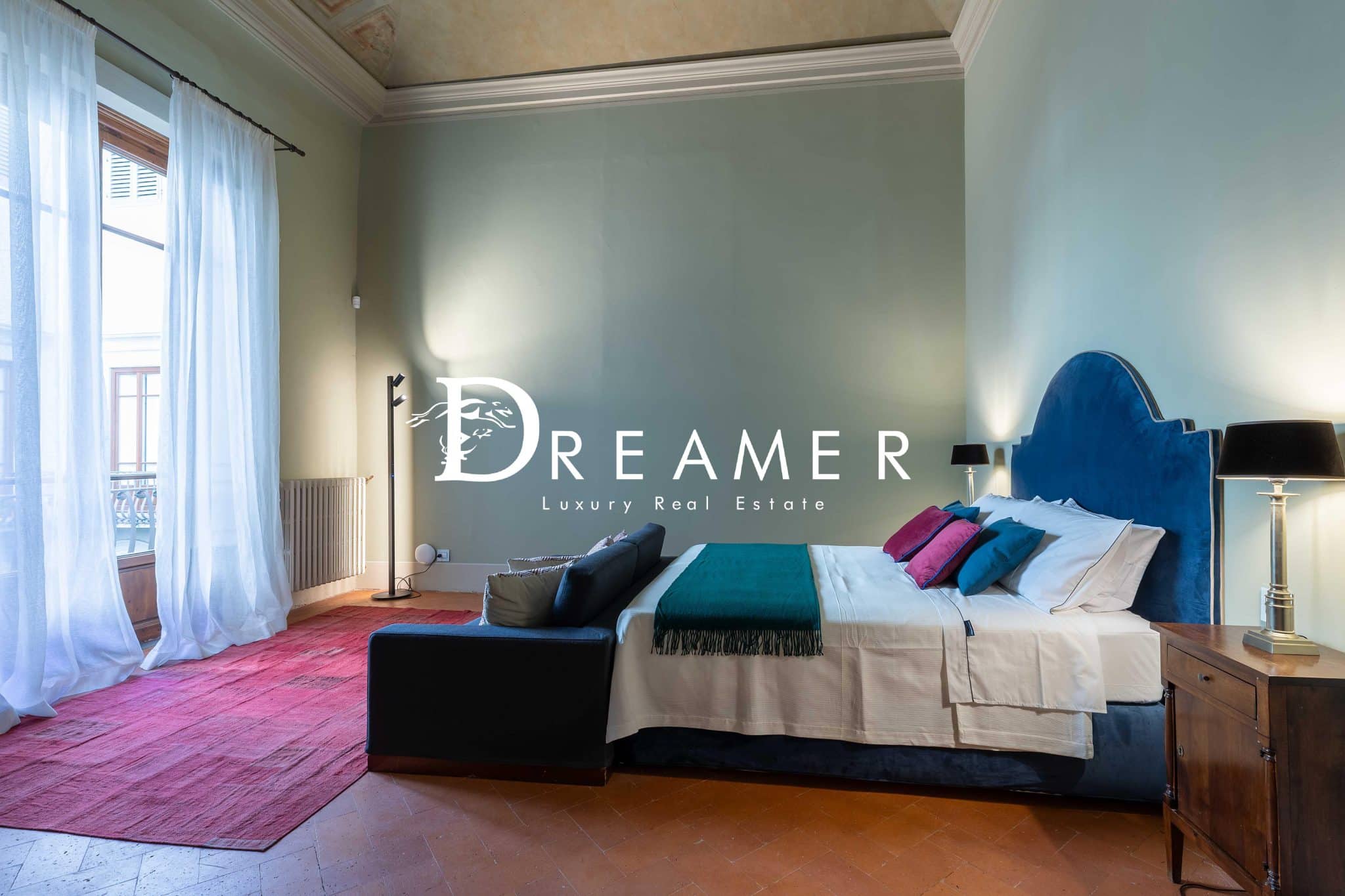 Magnificent frescoed apartment with garage and concierge service for rent in the heart of Florence, just steps from Santa Croce and the city’s main historic attractions. Located on the first floor of an elegant historic building with an elevator, this prestigious residence, recently renovated with meticulous attention to detail, offers approximately 300 sqm of refined interiors with four bedrooms and five bathrooms.