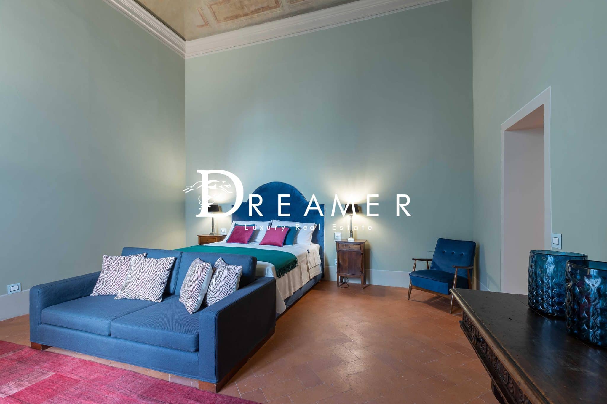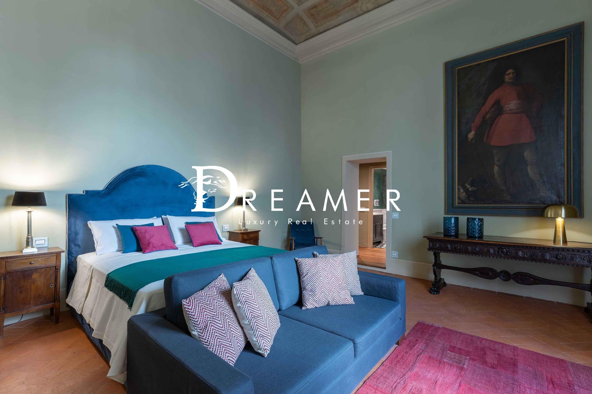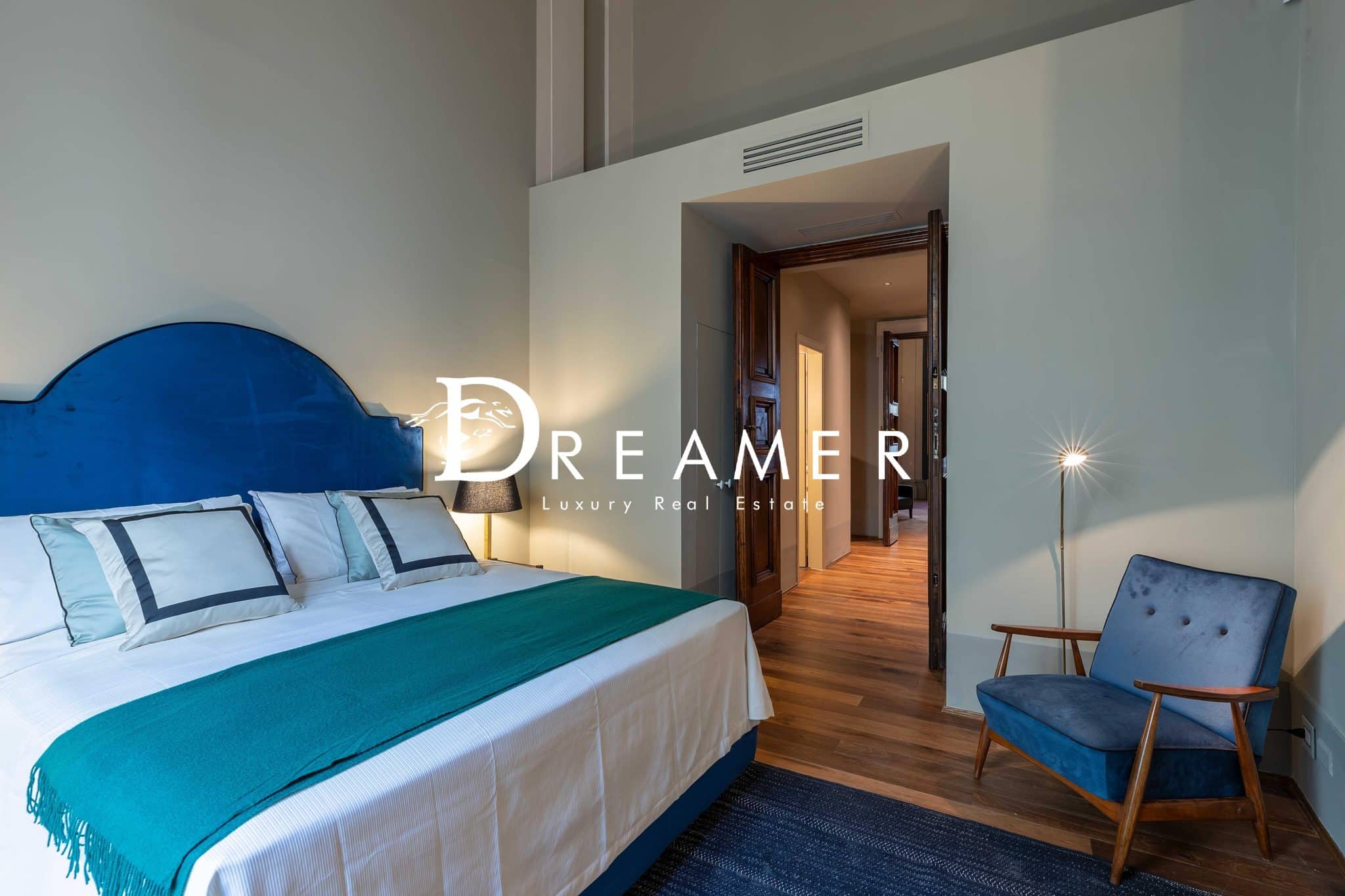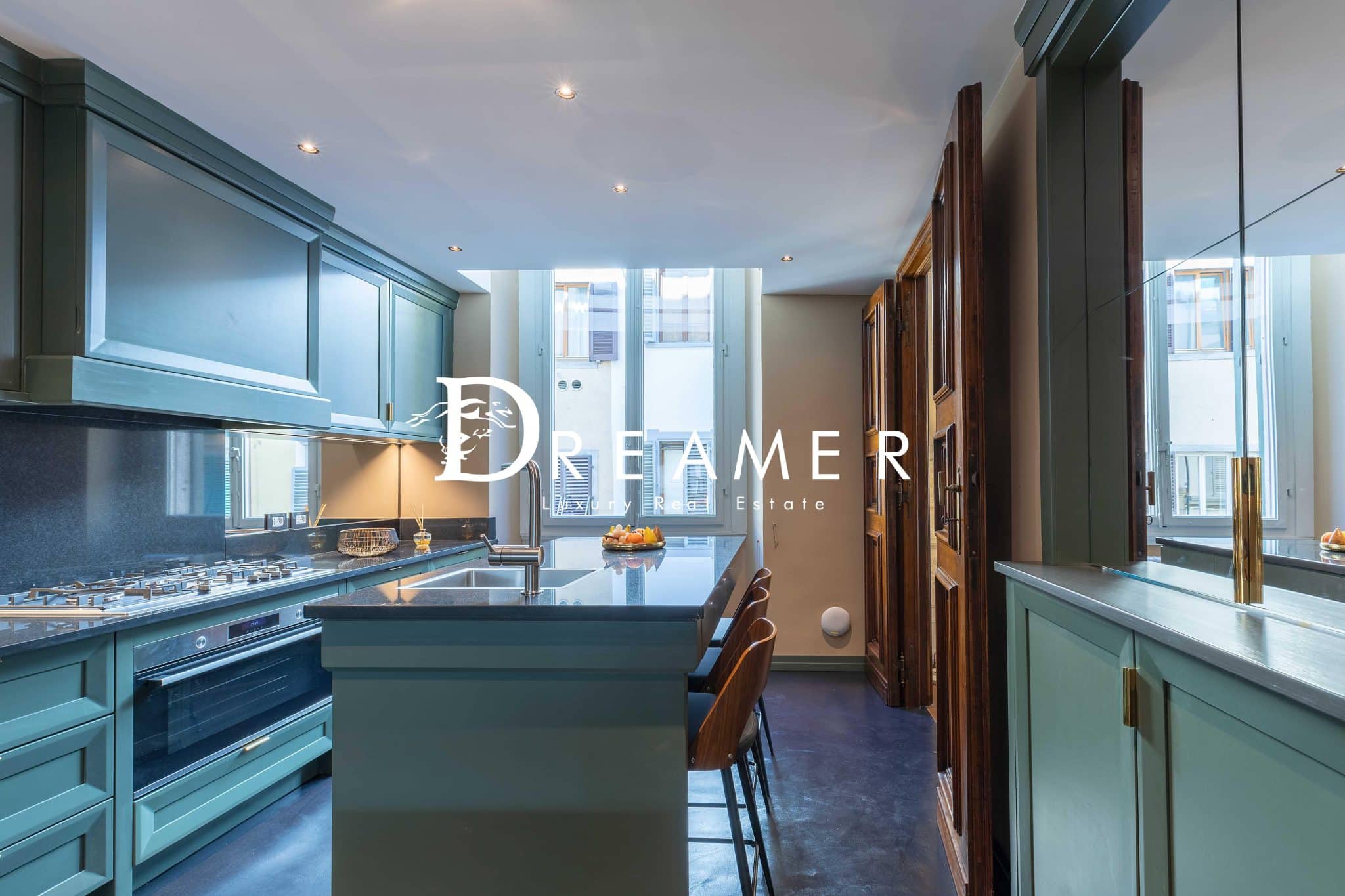 Magnificent frescoed apartment with garage and concierge service for rent in the heart of Florence, just steps from Santa Croce and the city’s main historic attractions. Located on the first floor of an elegant historic building with an elevator, this prestigious residence, recently renovated with meticulous attention to detail, offers approximately 300 sqm of refined interiors with four bedrooms and five bathrooms.