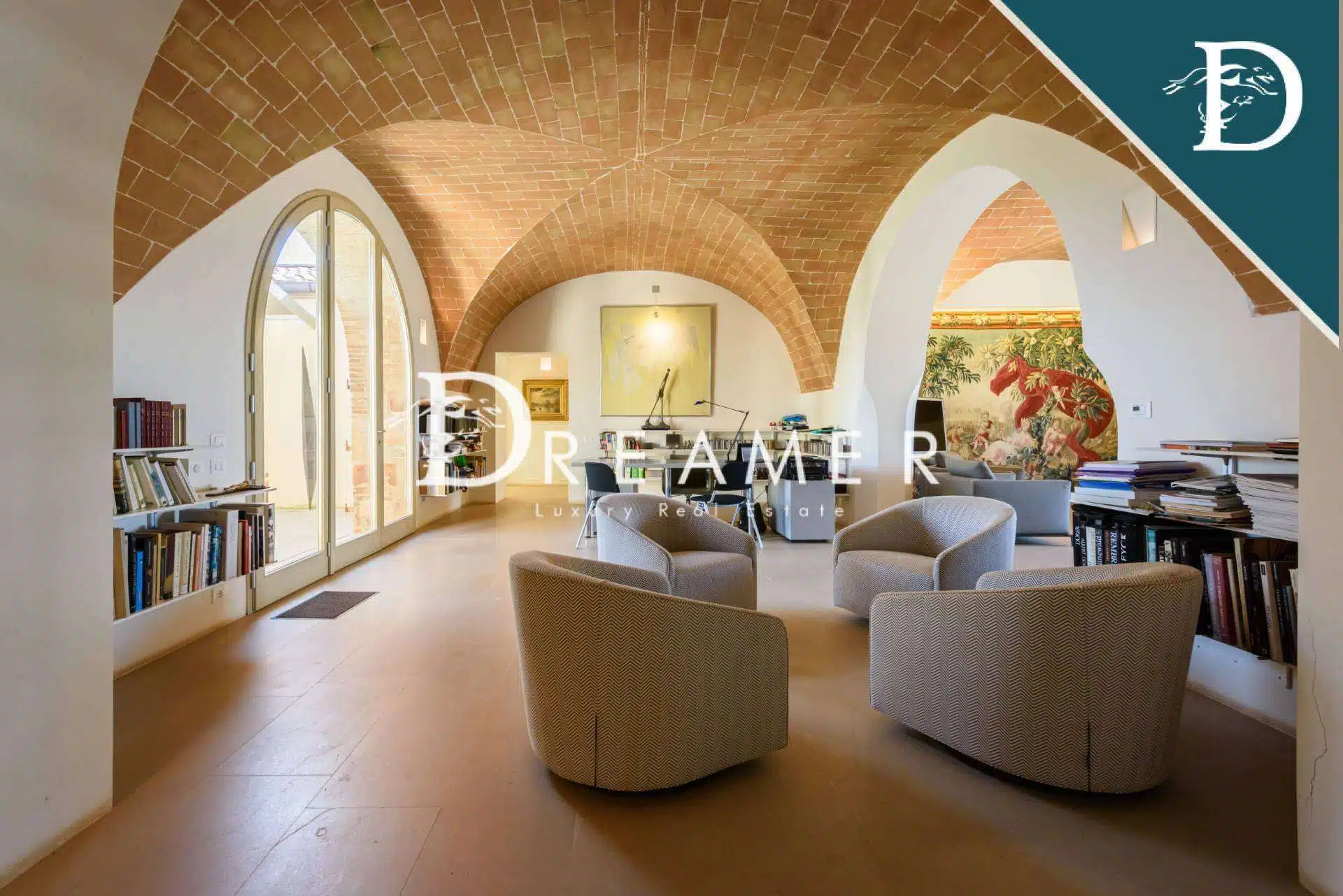 The restoration transformed this villa with pool in Volterra into a unique object. Inside there are high-level elements, such as underfloor heating and cooling systems, home automation elements, and solar panels.