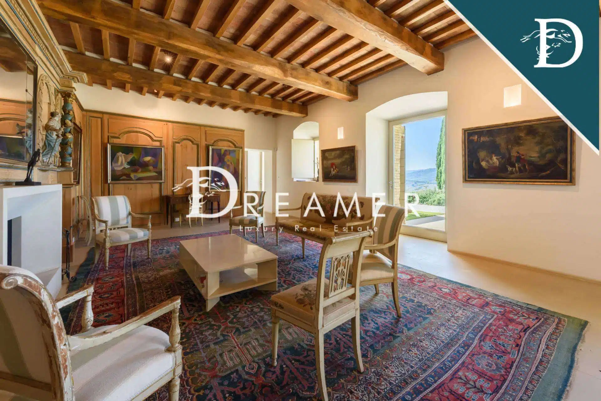 The villa of approximately 980 sqm, with 5 bedrooms and 6 bathrooms, enjoys privacy and a breathtaking view of the hills. You can access the property via a typical and picturesque dirt road, after passing the last hill the property is clearly visible in all its charm.