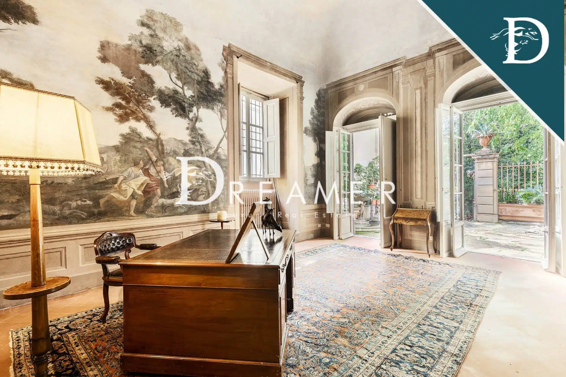 Located in an aristocratic 15th-century palace, this extraordinary historic apartment offers a rare opportunity to own a piece of Florence‘s glorious past. Spanning 1,100 square meters, the property comprises two refined residences, seamlessly blending Renaissance grandeur with modern comfort. With 6 luxurious bedrooms, 5 bathrooms, and enchanting frescoed salons, the estate embodies the pinnacle of Italian artistry. The main apartment unfolds in a horseshoe shape around a central courtyard, a serene oasis that recalls the city’s rich heritage. Architectural marvels abound, including frescoes attributed to Piero di Cosimo, as noted by Giorgio Vasari, refined antiques, and sculptural masterpieces that adorn the reception halls. A sanctuary of prestige and elegance, this residence is an ode to the splendor of Florence’s artistic legacy.