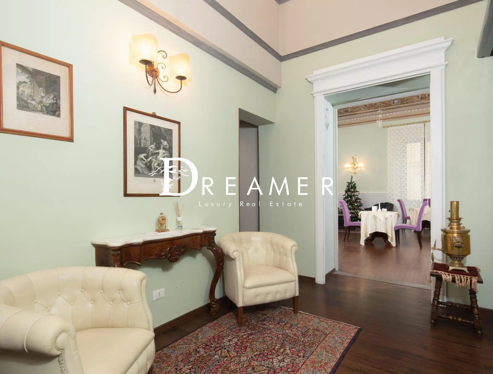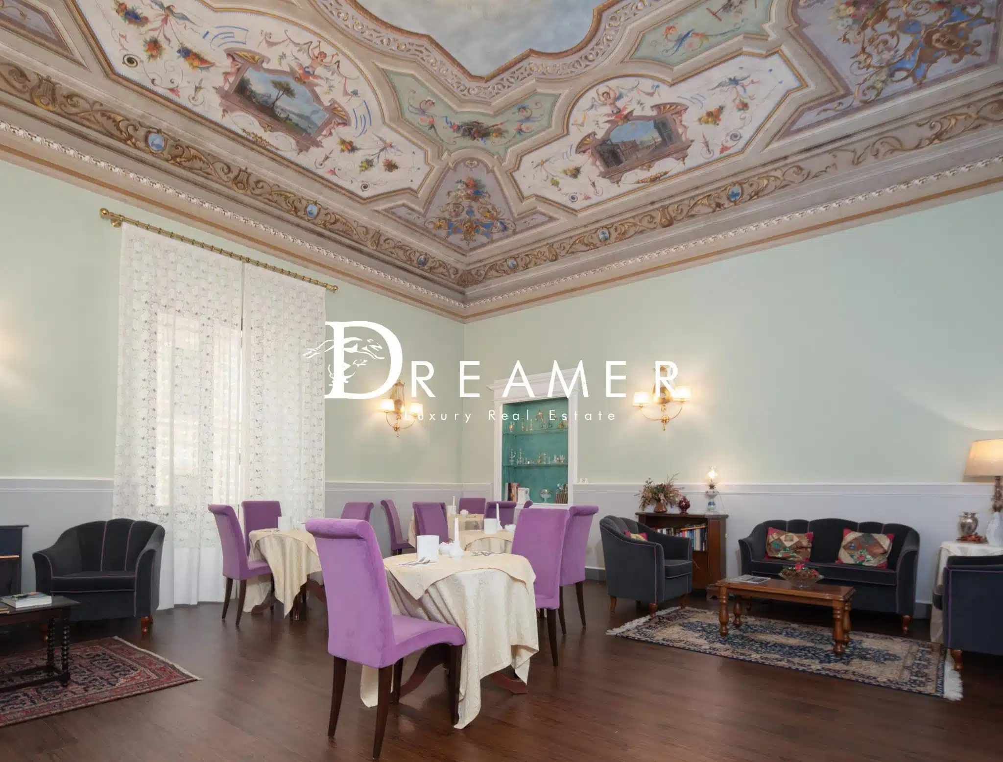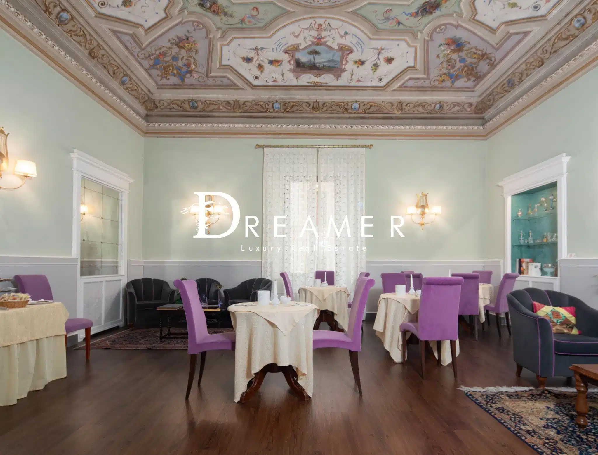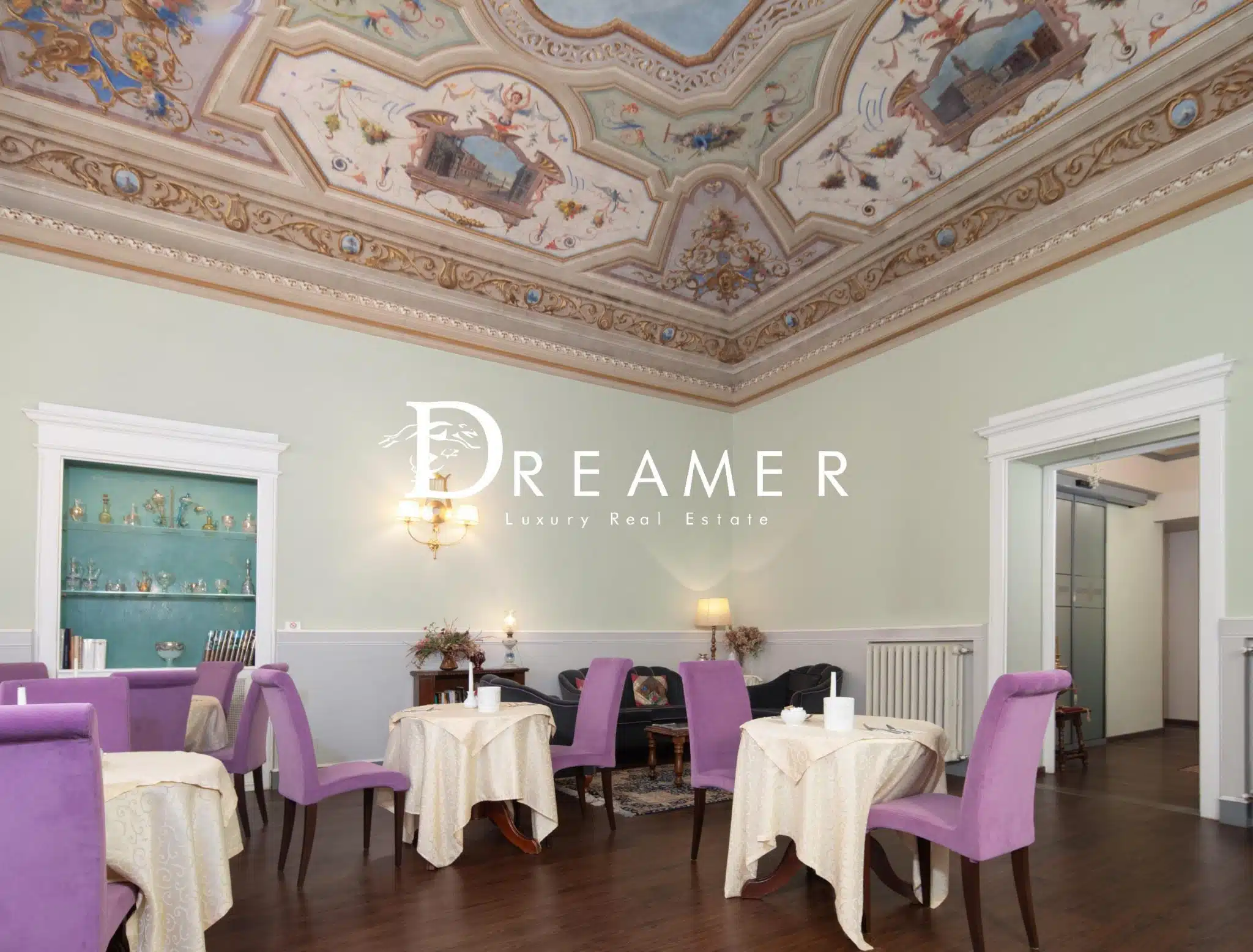 The entrance leads to a welcoming reception area that opens onto a spacious breakfast room. The property features 7 spacious bedrooms, all with en suite bathrooms, as well as a walk-in closet. The property stands out for its 4-meter-high ceilings, charming ornamental frescoes, and high-quality finishes. There are also several utility rooms, including storage rooms, a small kitchen, and a guest bathroom, useful for running the business. The utility rooms are located in the attic.