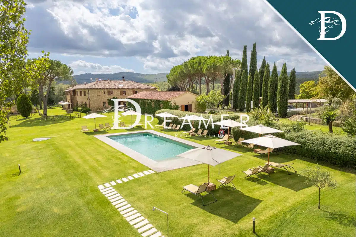 This magnificent property is located in Murlo. It’s an ancient and characteristic medieval village in the province of Siena, from which it is only 15 minutes away. Furthermore, from the property it is possible to easily reach some of the most beautiful Tuscan villages such as Montalcino and Pienza, as well as the famous spa town of Rapolano. Thanks to its strategic position and the expert renovation, this property is perfect for those who wish to live in a luxurious private residence or run a tourist-accommodation business in the heart of the Tuscan countryside.