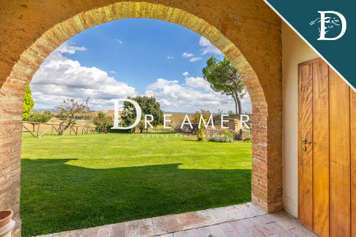 The property is currently divided into six independent apartments, easily reconfigurable into a single prestigious residence. Each unit has been designed to ensure maximum comfort. With elegant finishes and a distribution of spaces studied to enhance the brightness and the surrounding panorama. From the large windows you can enjoy an extraordinary view of the Crete Senesi and the holm oak woods that mark the beginning of the Maremma.