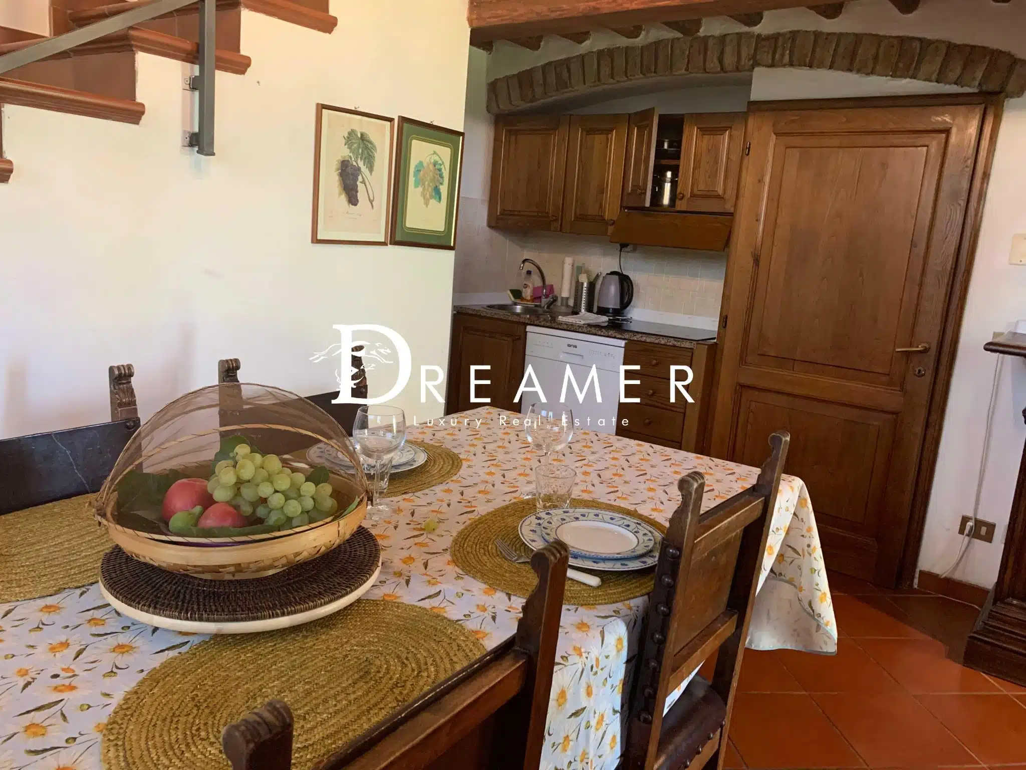 The main villa is spread over two floors. The ground floor features a large entrance hall and a guest bathroom. The first floor comprises a spacious dining room, a kitchen with access to a large terrace, a living room, and two bedrooms with two bathrooms. The ground floor also features 2 independent apartments, each with a bedroom, kitchenette, and bathroom. The estate also includes a large veranda with a wood-burning oven, agricultural rooms, a laundry room, and several practical storage rooms, ideal for fully enjoying outdoor living and farming. The entire property retains its rustic Tuscan charm, with terracotta floors, exposed beams, and original fireplaces, offering warm and welcoming spaces perfect for both everyday living and hosting guests.