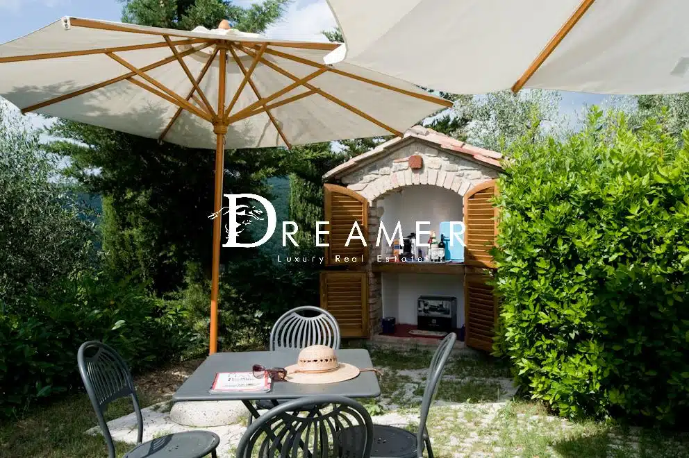 The swimming pool, with a solarium and panoramic views, along with the spacious outdoor living areas, the pergola planted with strawberry grapes, and the manicured gardens, create an exclusive setting for relaxation and outdoor living, also ideal for tourist accommodation.