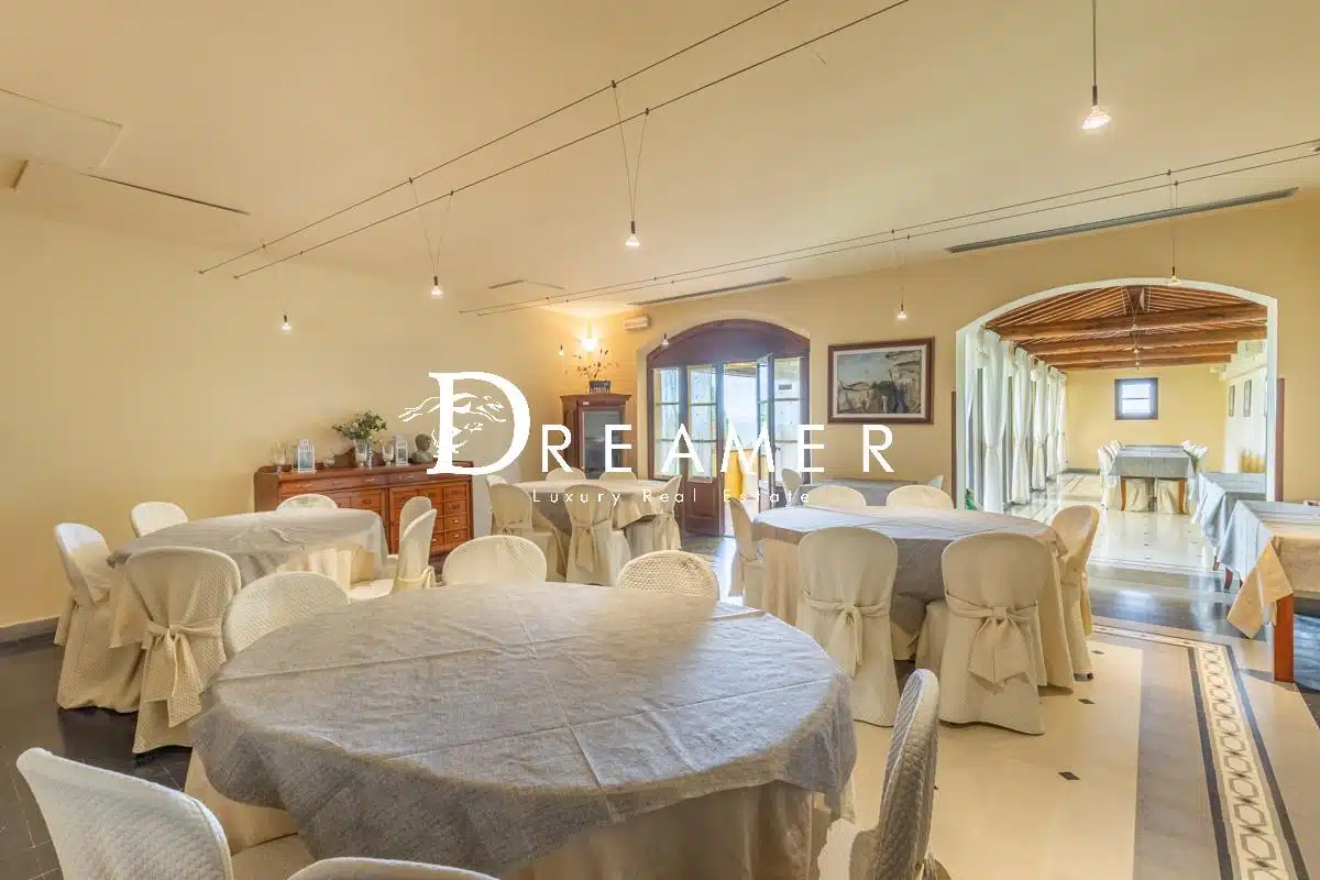 The presence of a restaurant allows guests to discover the authentic flavors of local cuisine, while a dedicated cellar hosts tastings of wines and extra virgin olive oils produced on the estate or in nearby companies, enhancing the link with the territory. The property is completed by various accessory spaces, including a covered garage, warehouses, technical rooms and a private parking area.