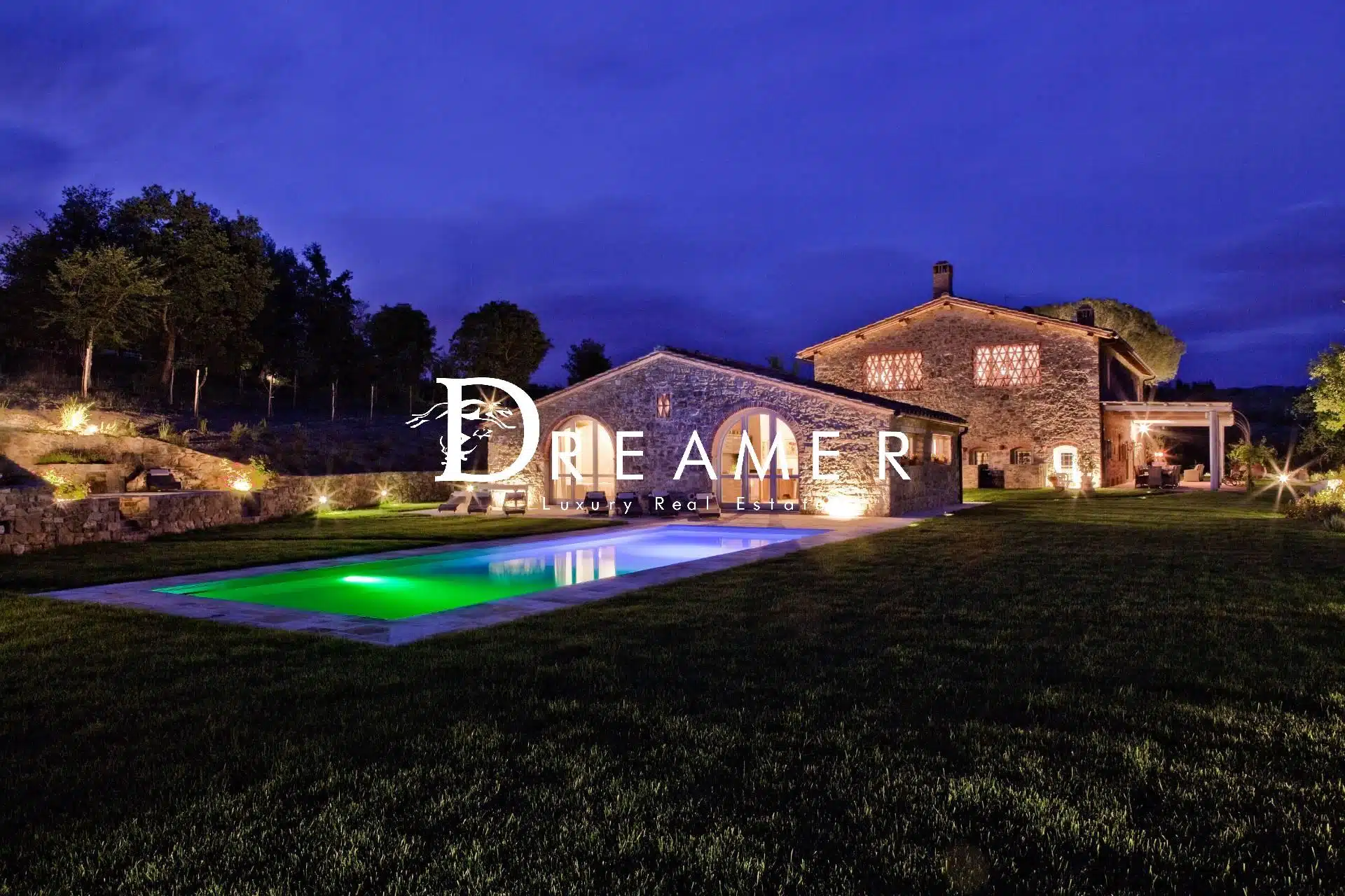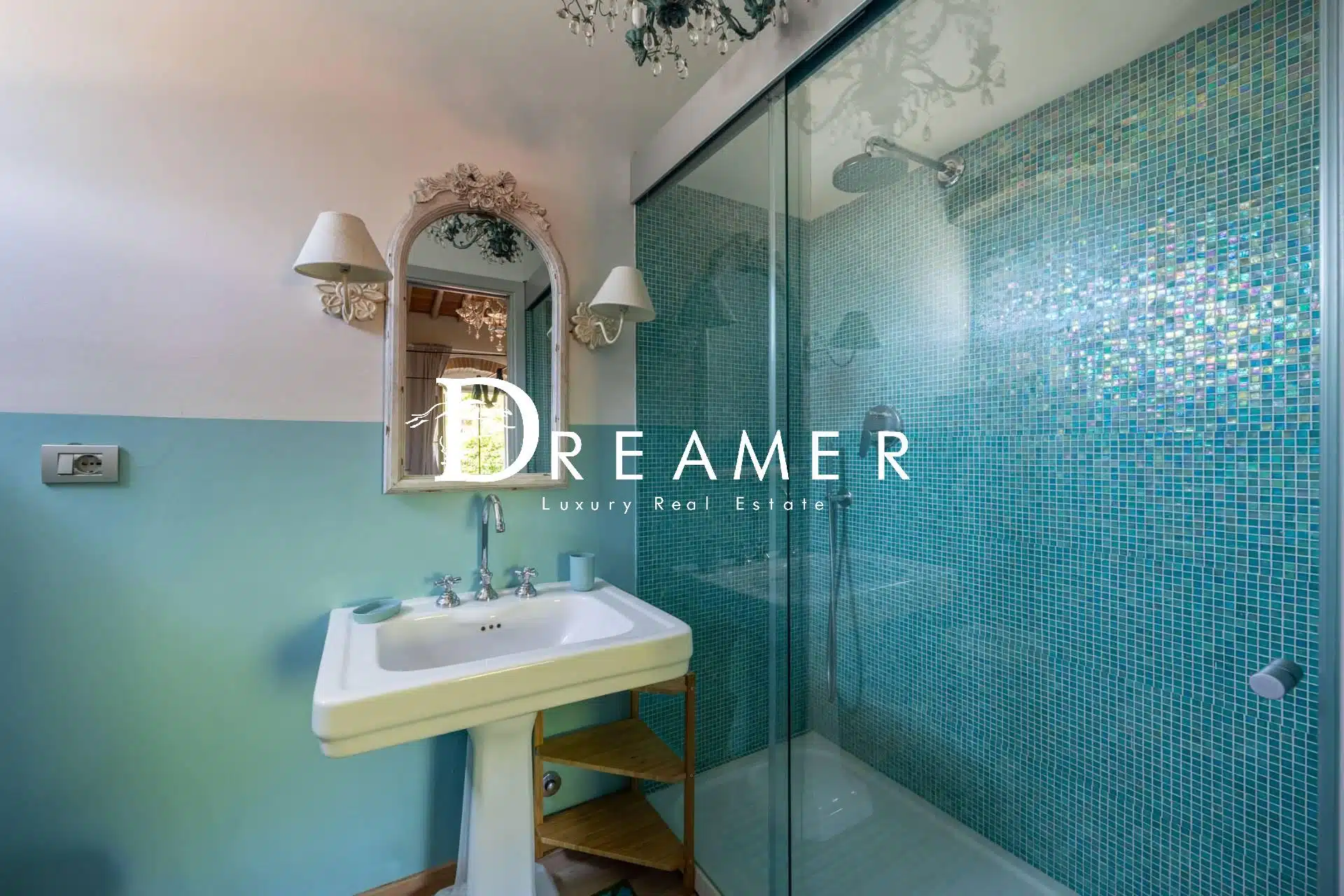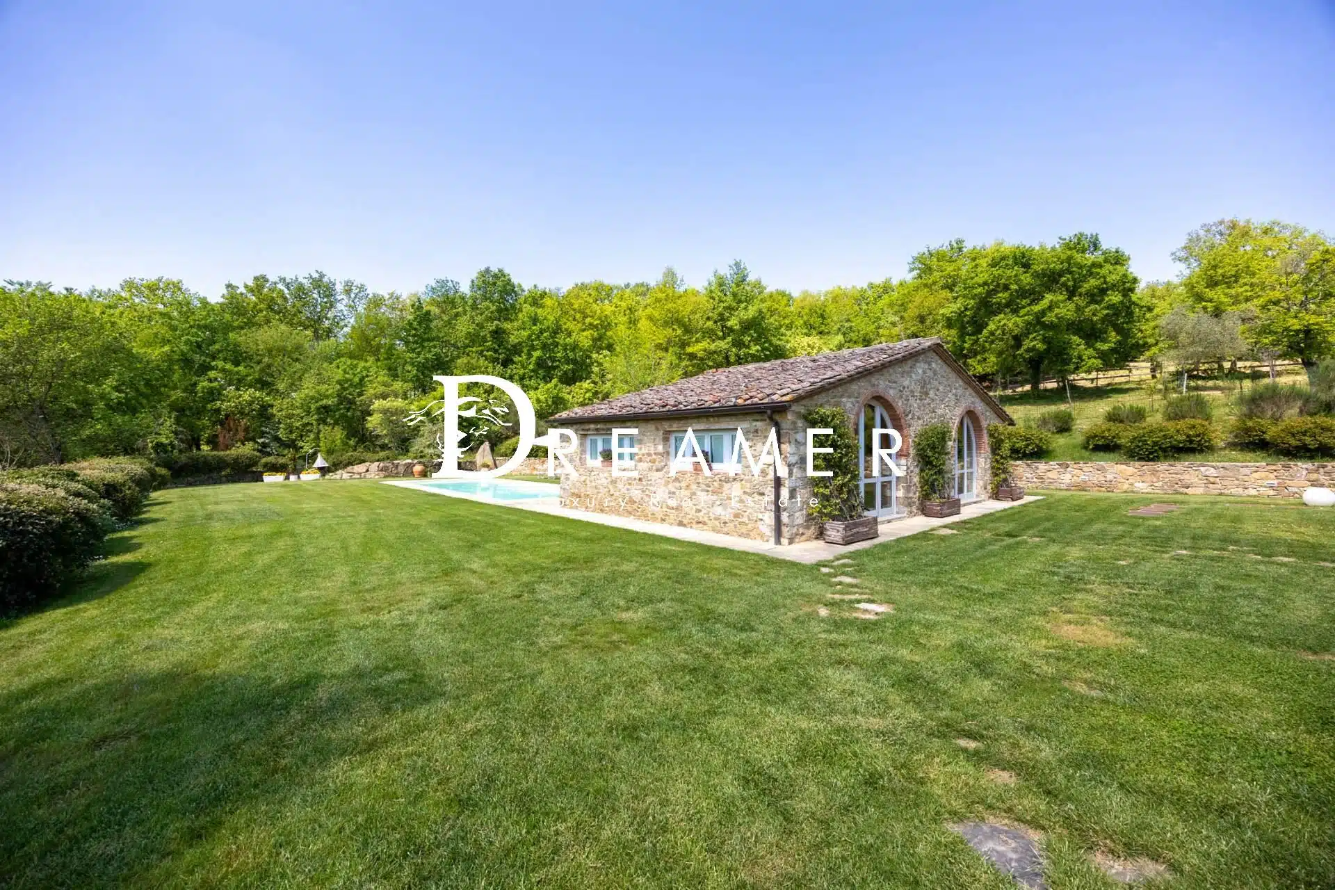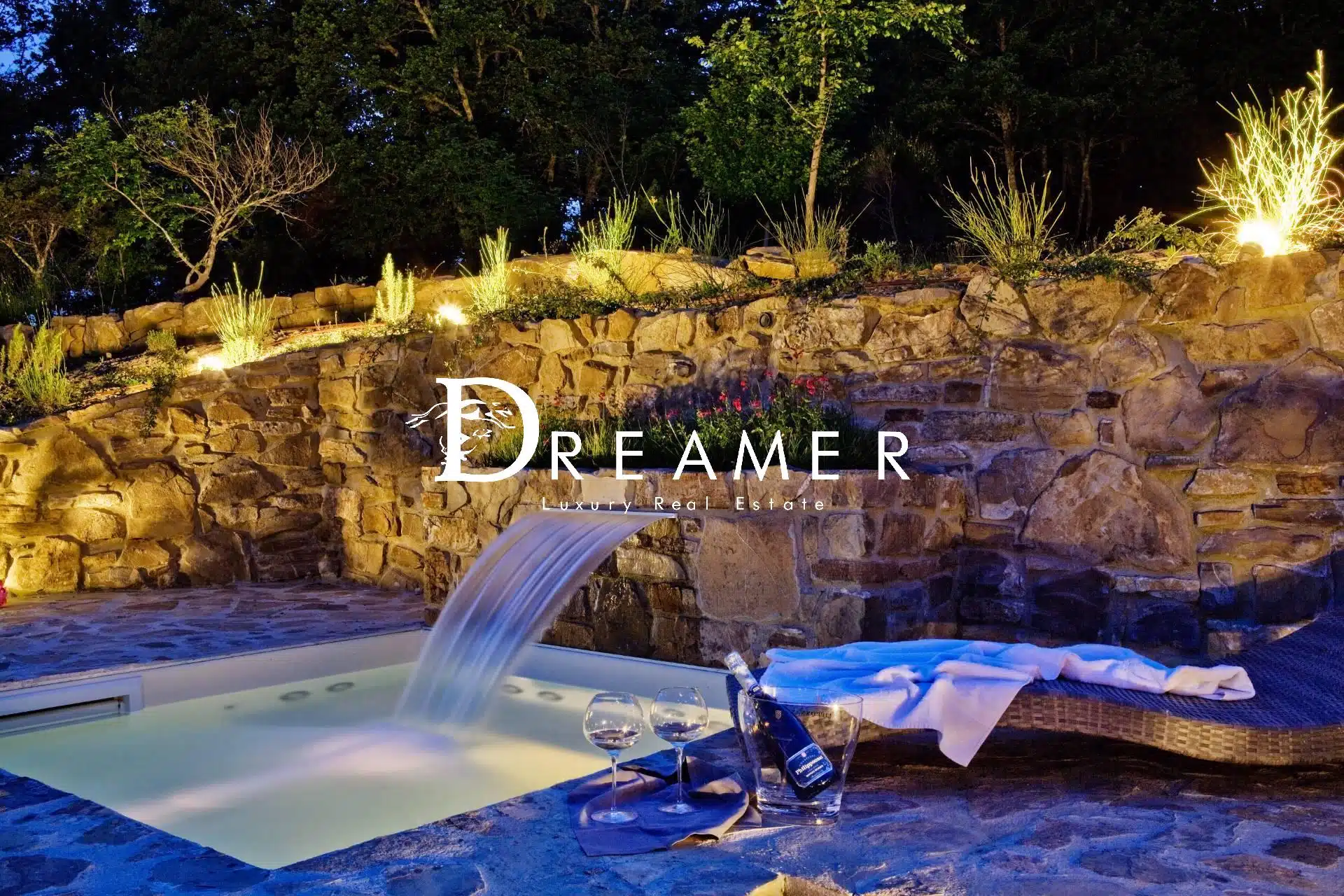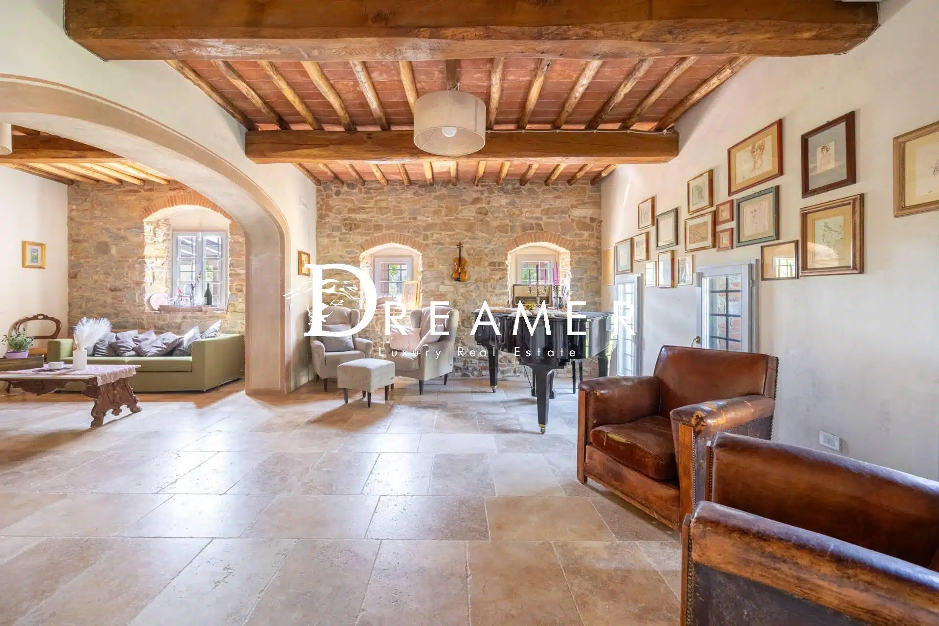 Outside, the property includes 30 hectares of land, of which 8.5 are intended for arable land, and includes a riding school. It is an added value both for those who want to practice horse riding and for an agritourism activity linked to experiential tourism. A magnificent terraced garden surrounds the property and hosts a splendid 12×4 meter swimming pool with waterfall and stone hot tub, perfect for relaxing immersed in the beauty of nature.