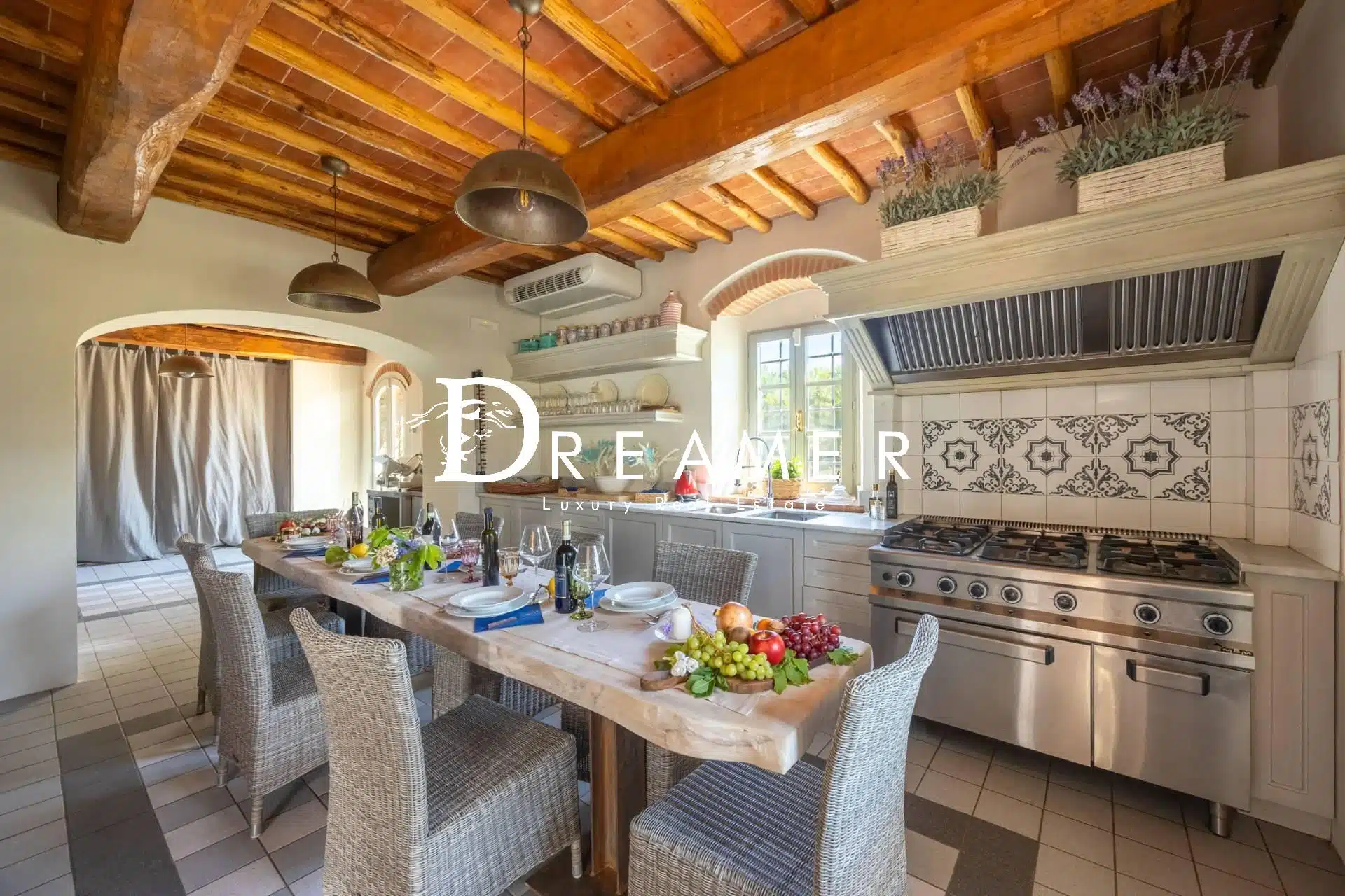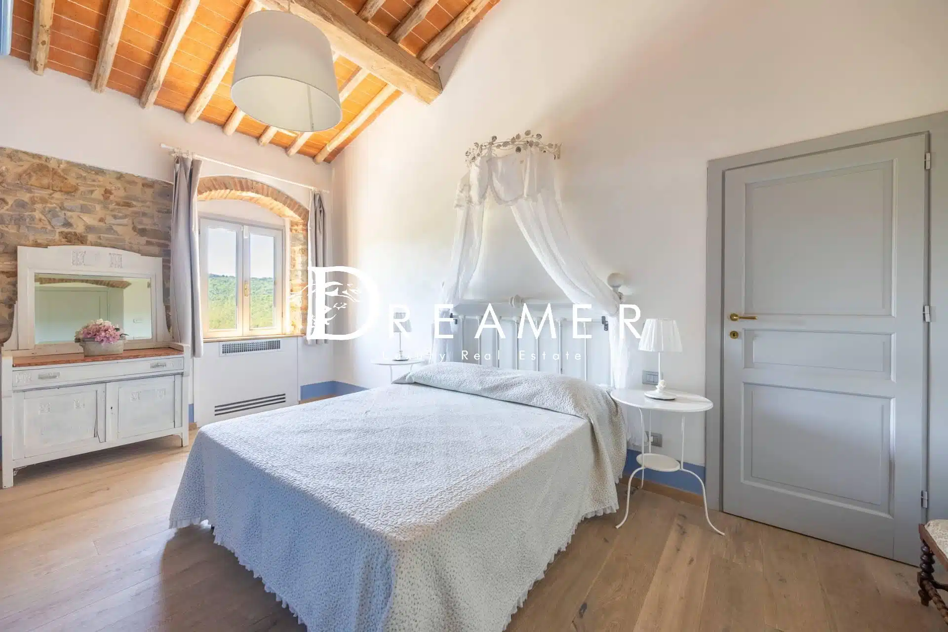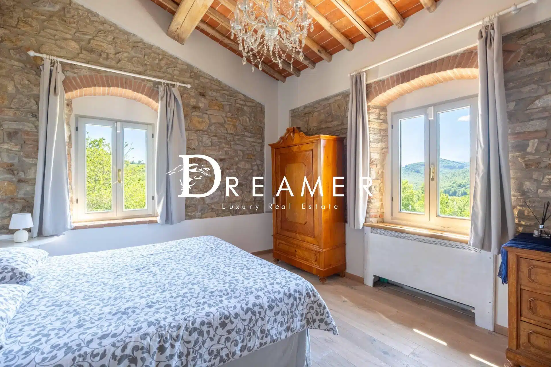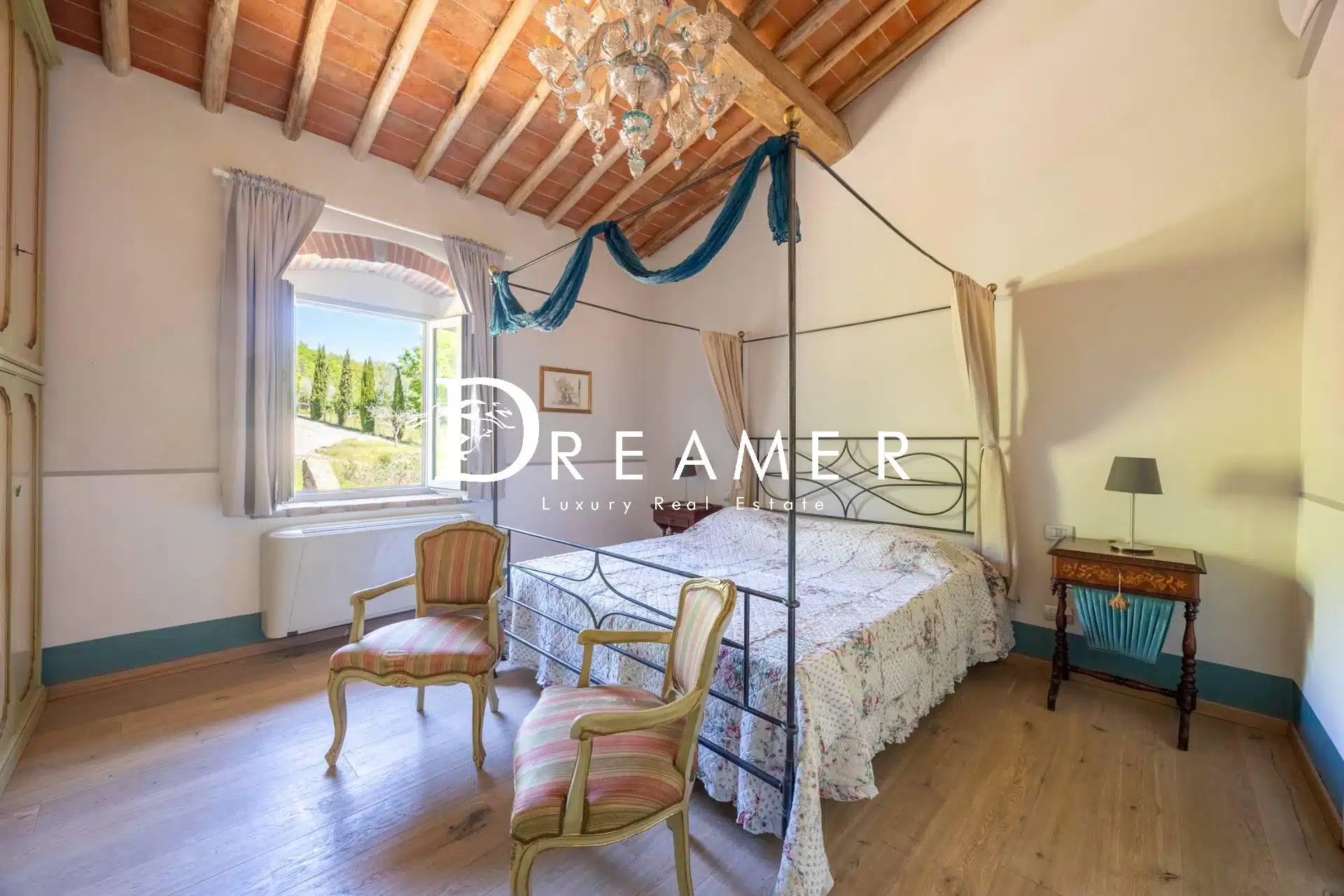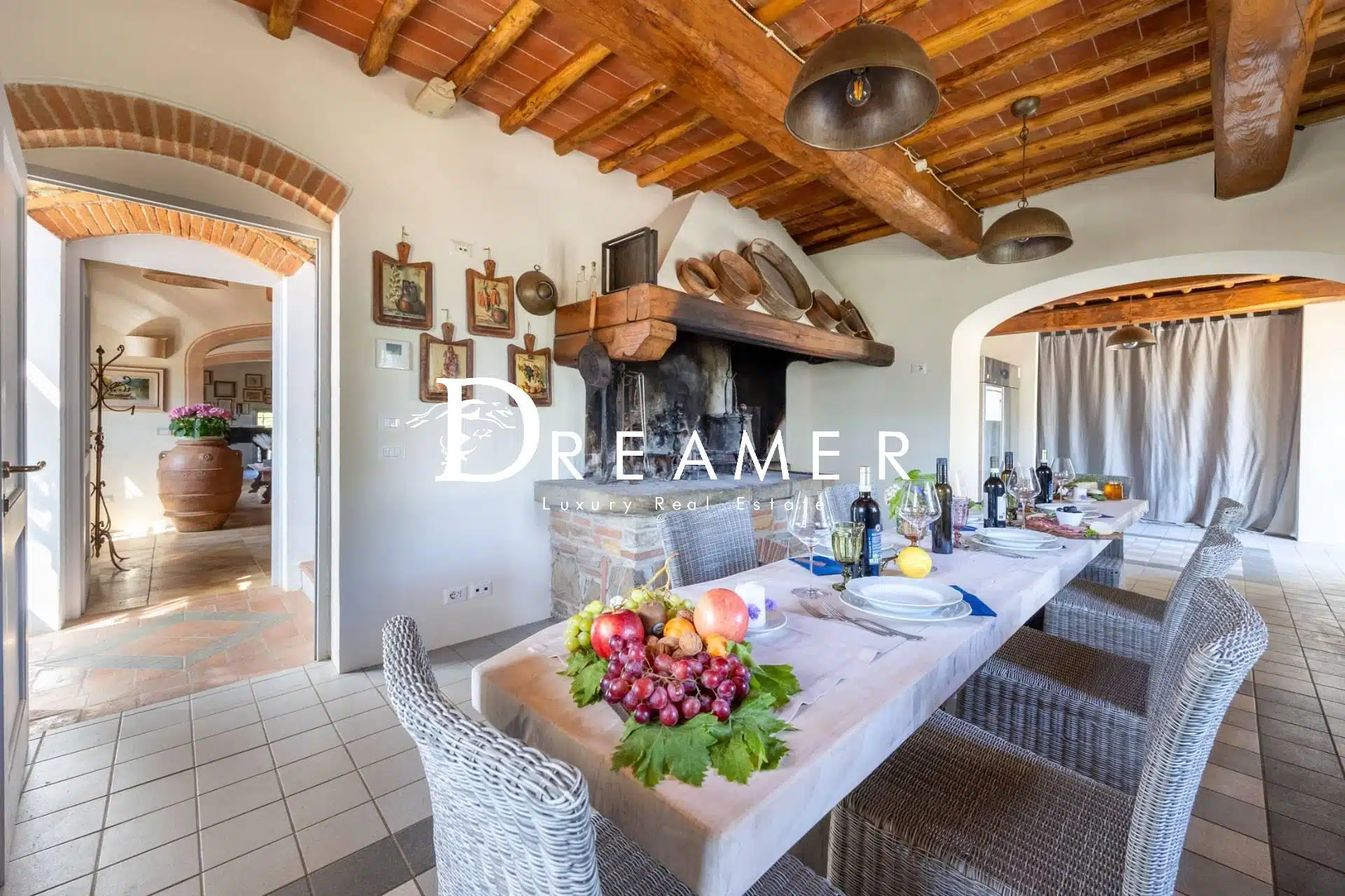 Tuscan villa for sale in the hills of Florence, a few minutes from Greve in Chianti and less than an hour from Florence and Siena. The property, in a dominant position on the Tuscan hills, consists of a main villa and an annex, for a total of 545 sqm with 8 bedrooms and 8 bathrooms.