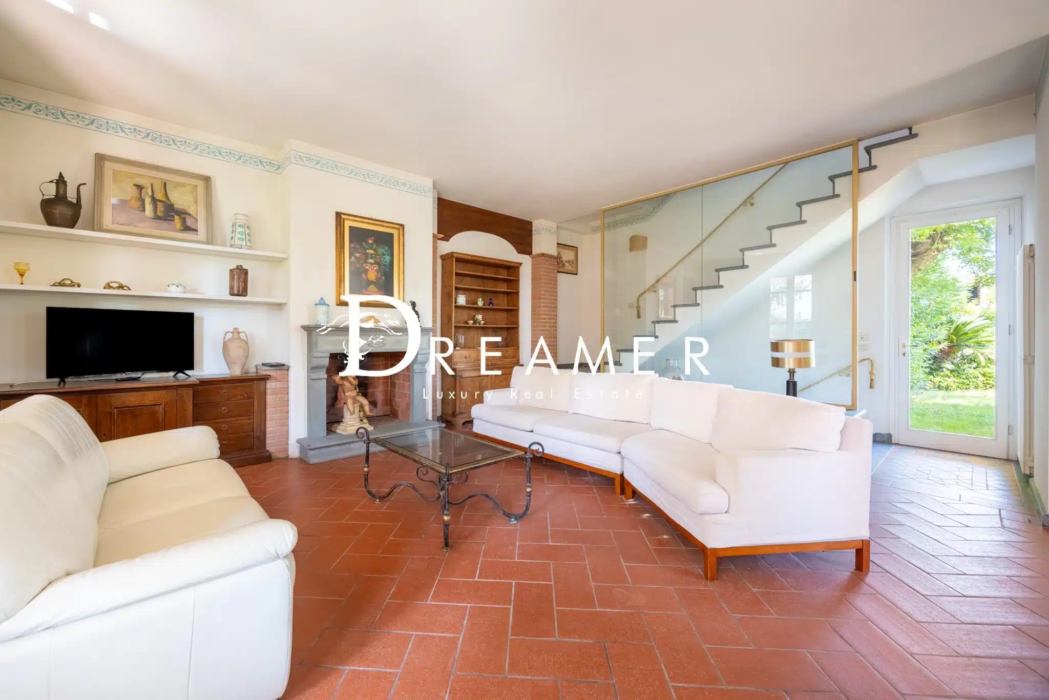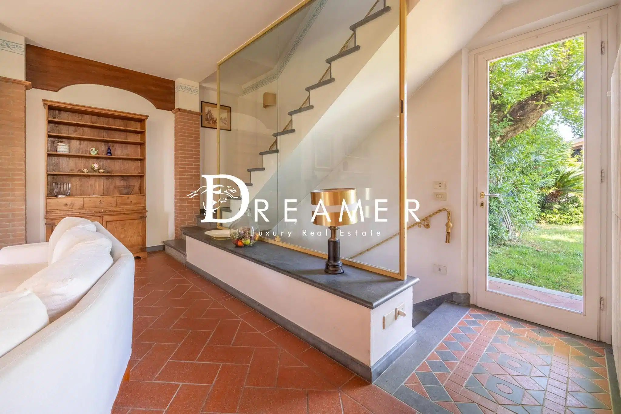 Outside, the villa is enhanced by a splendid private garden that offers relaxing corners and ample scope for customization according to the buyer’s needs.