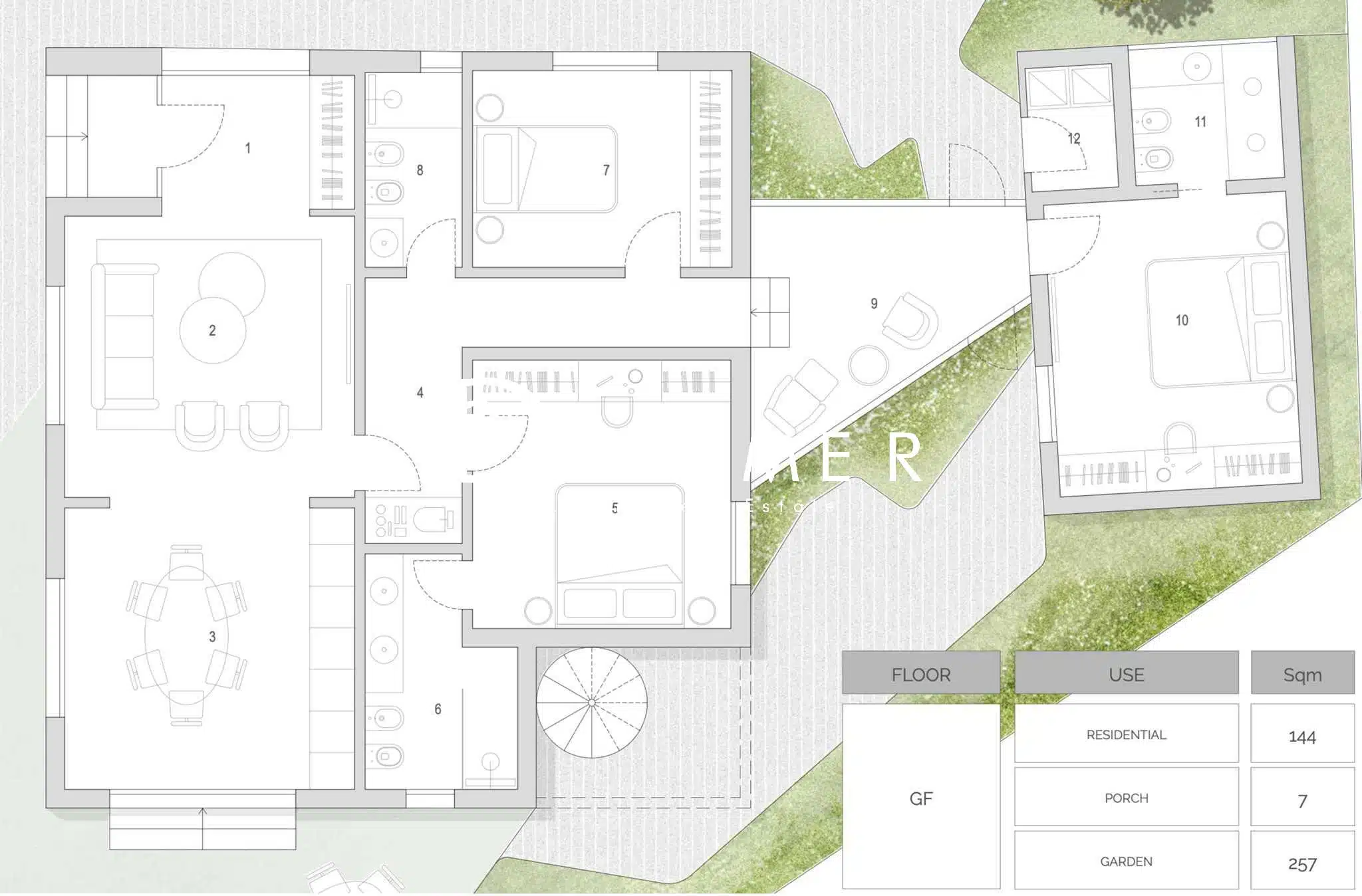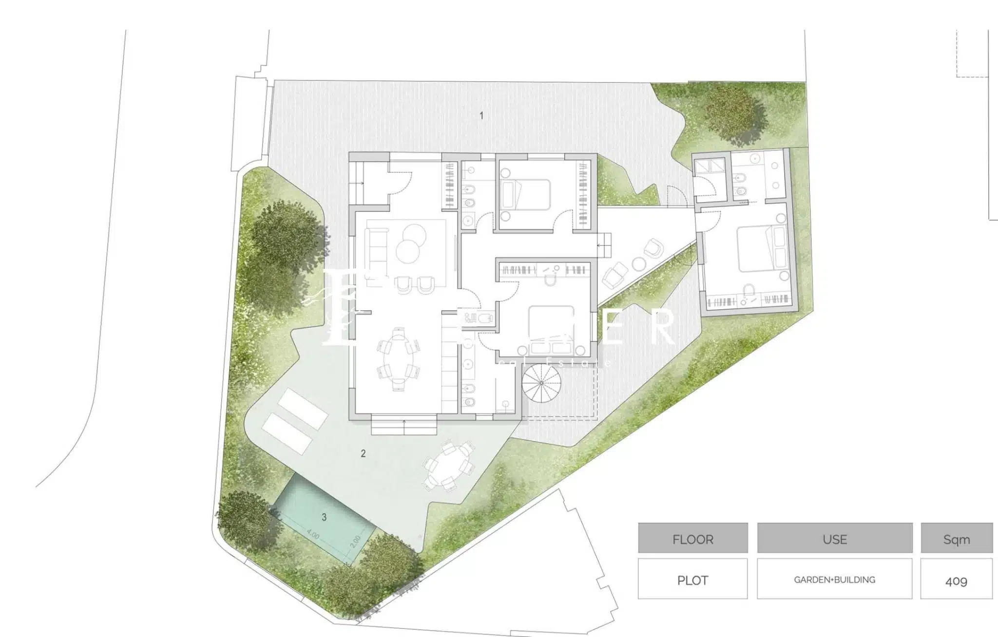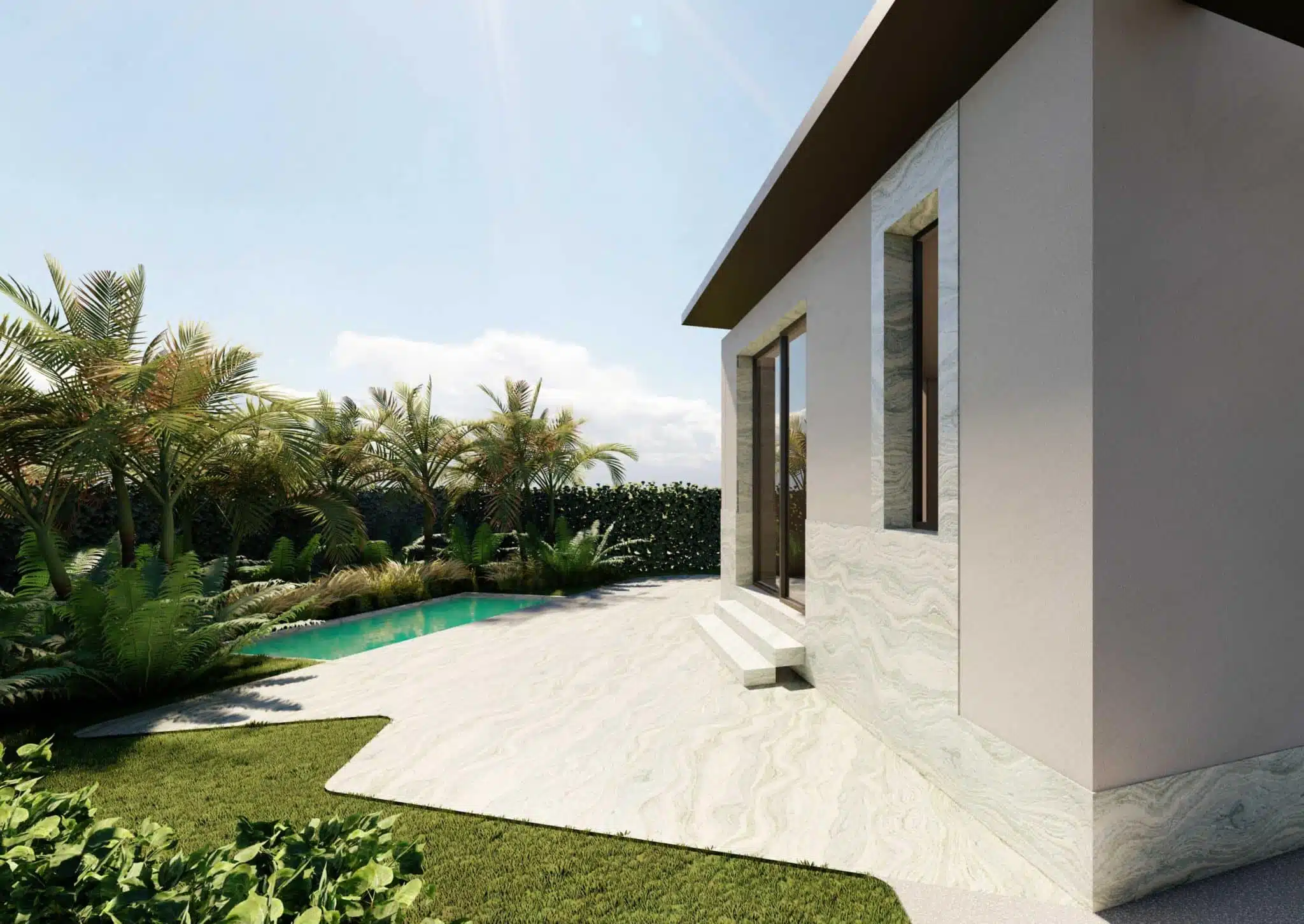 The exteriors of the villa are designed to ensure moments of relaxation and conviviality: