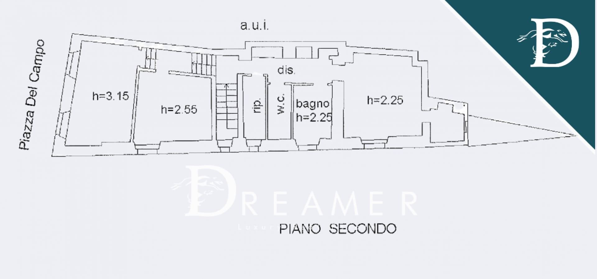 On the ground floor, the independent entrance leads into a welcoming environment, which can be used as a wine cellar or a small reception area. Going up to the first floor, you enter the living area consisting of a large living room and a kitchen with a fireplace. Then, a dining room offers an enchanting view of the square and we also find a laundry room. The living area windows allow you to watch the annual Palio di Siena directly from the apartment. Elegant stairs lead to the sleeping area on the second floor, consisting of 3 double bedrooms and 2 bathrooms. One of the bedrooms is embellished with two windows that directly overlook Piazza del Campo. The apartment features elegant and refined finishes, parquet floors, false ceilings decorated with paintings and friezes, and an internal staircase with travertine steps and terracotta tiles.