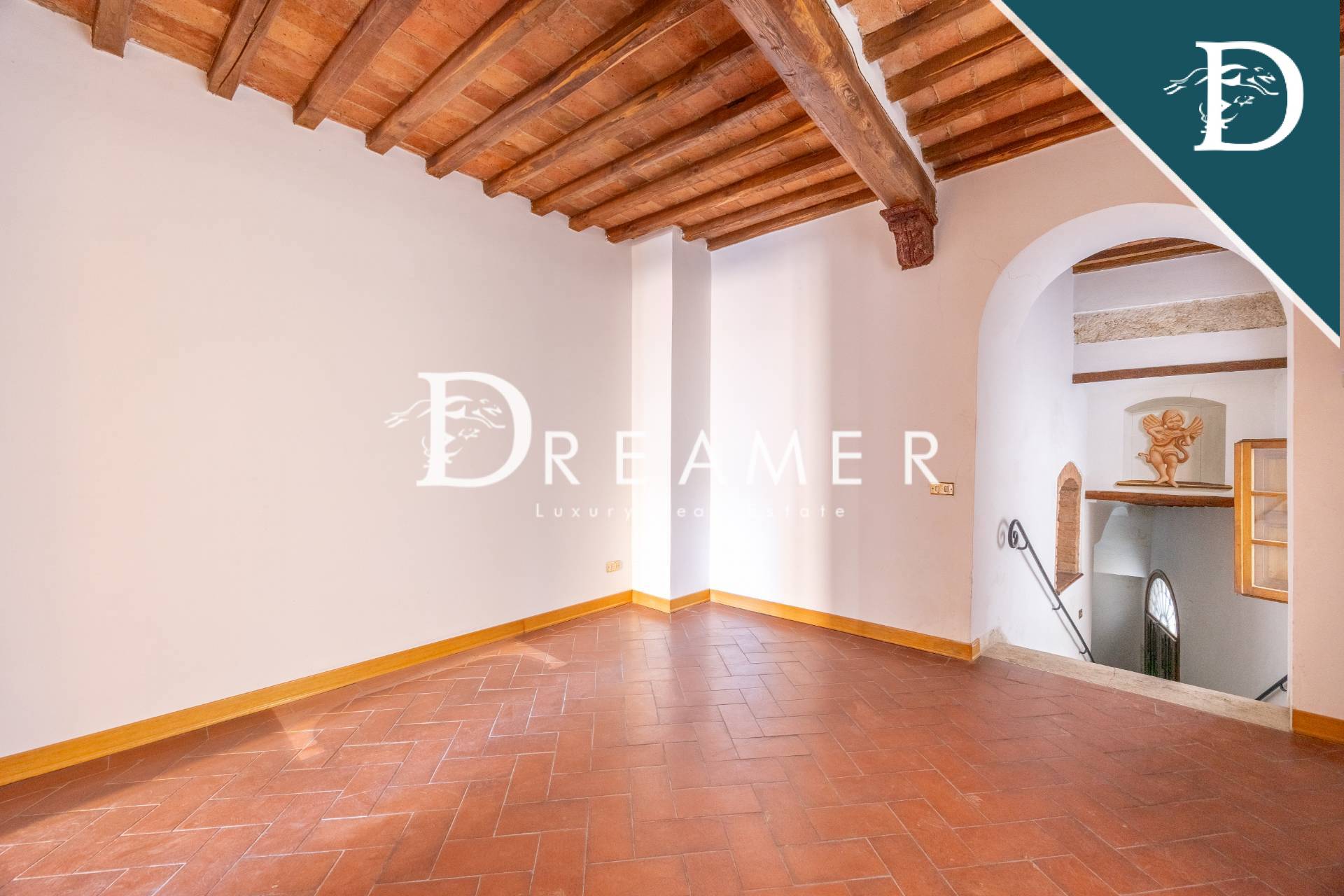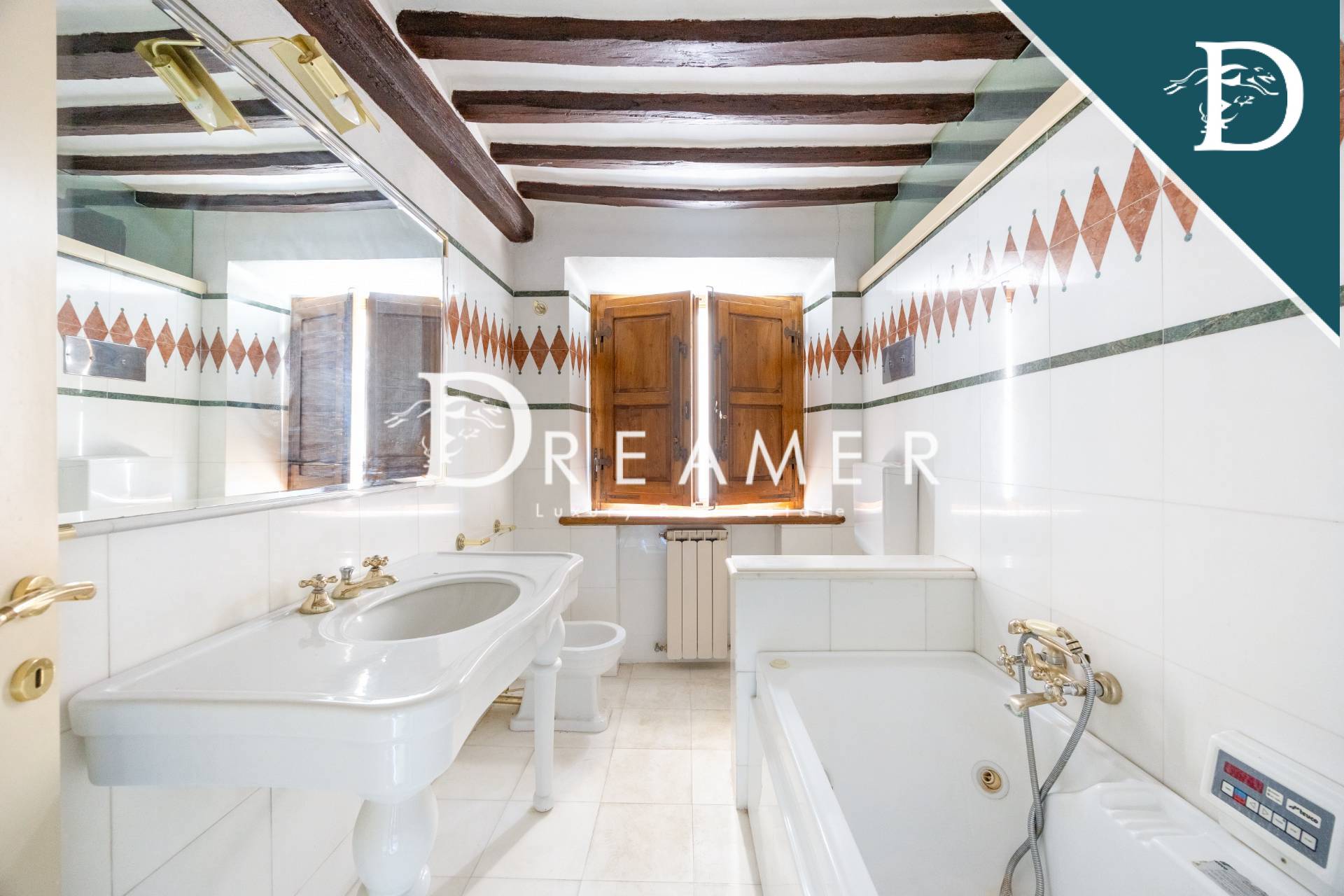 The apartment can be combined, through a separate negotiation, with a garage of over 80 sqm located less than 250 meters from the entrance of the property. This property represents a rare opportunity to own a piece of history in the heart of Tuscany. With all the modern conveniences, but without compromising the charm and historical elegance.