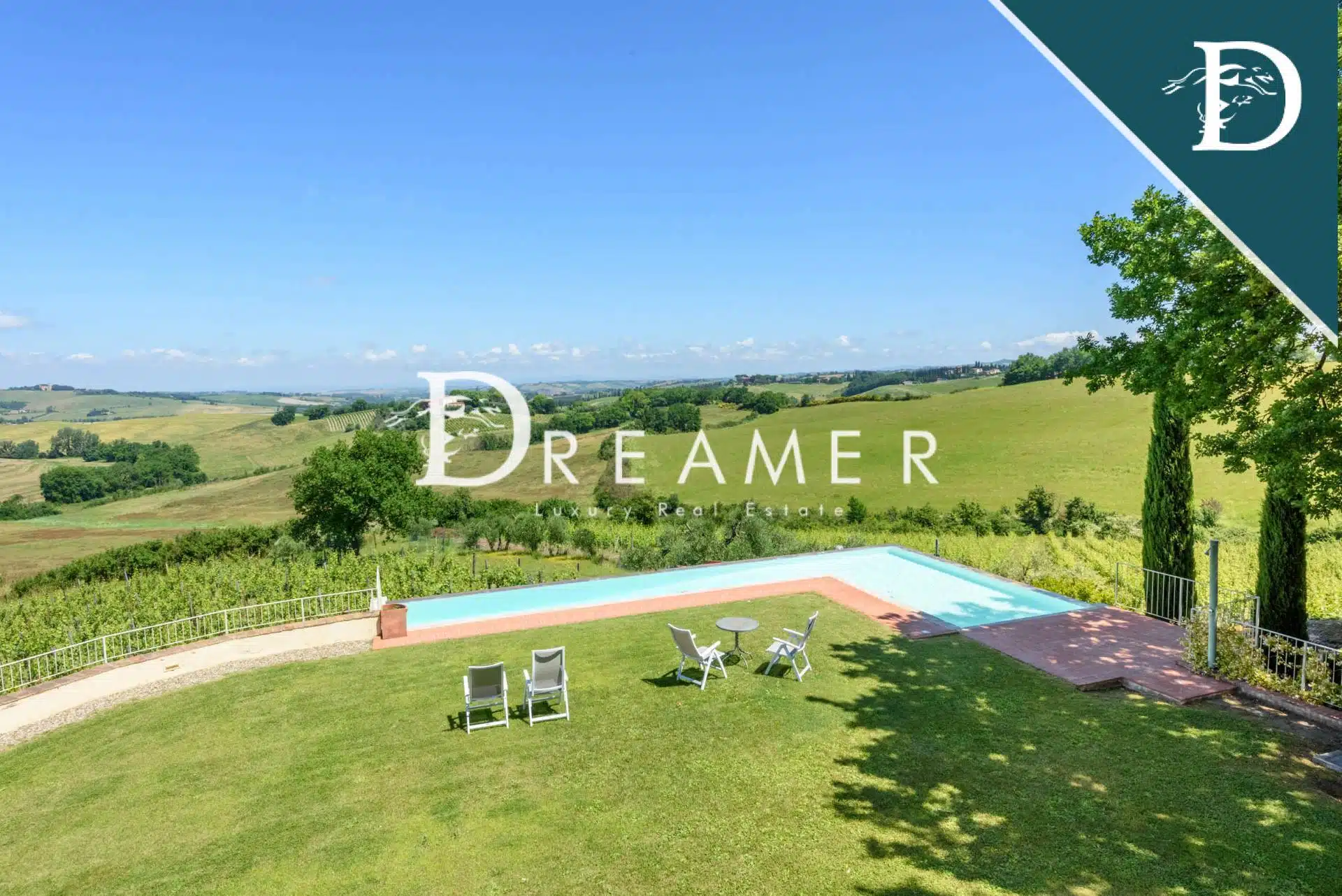 Farmhouse and farm with swimming pool and vineyard for sale in the hills of Val d’Orcia, just 10 minutes from Montalcino: one of the most appreciated wine areas in the world.