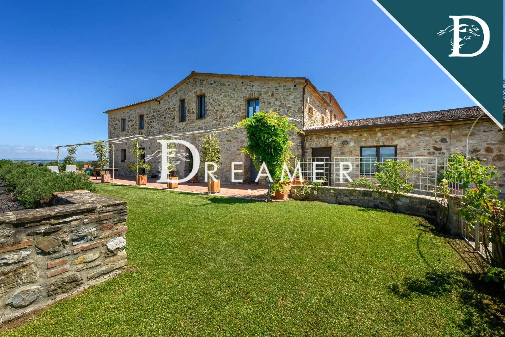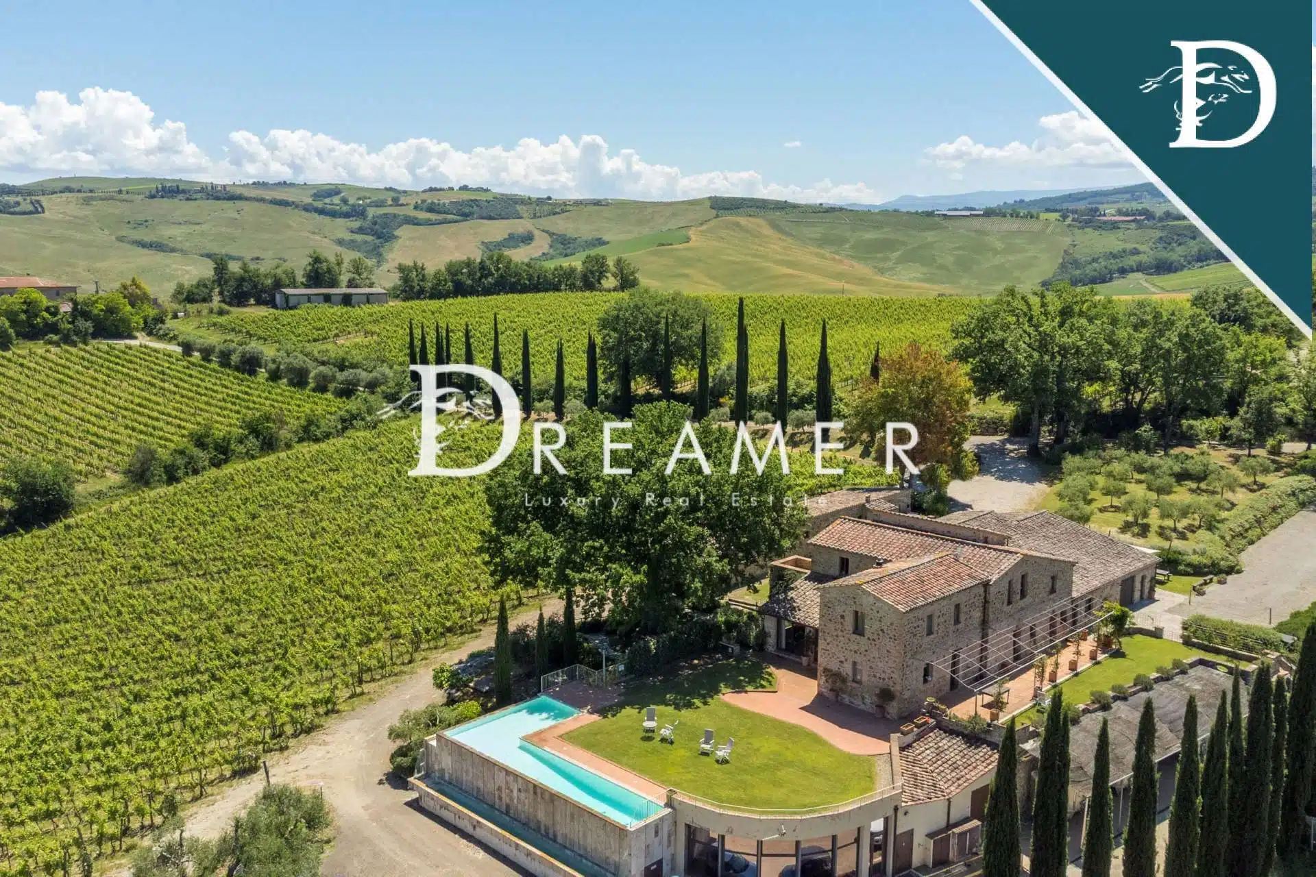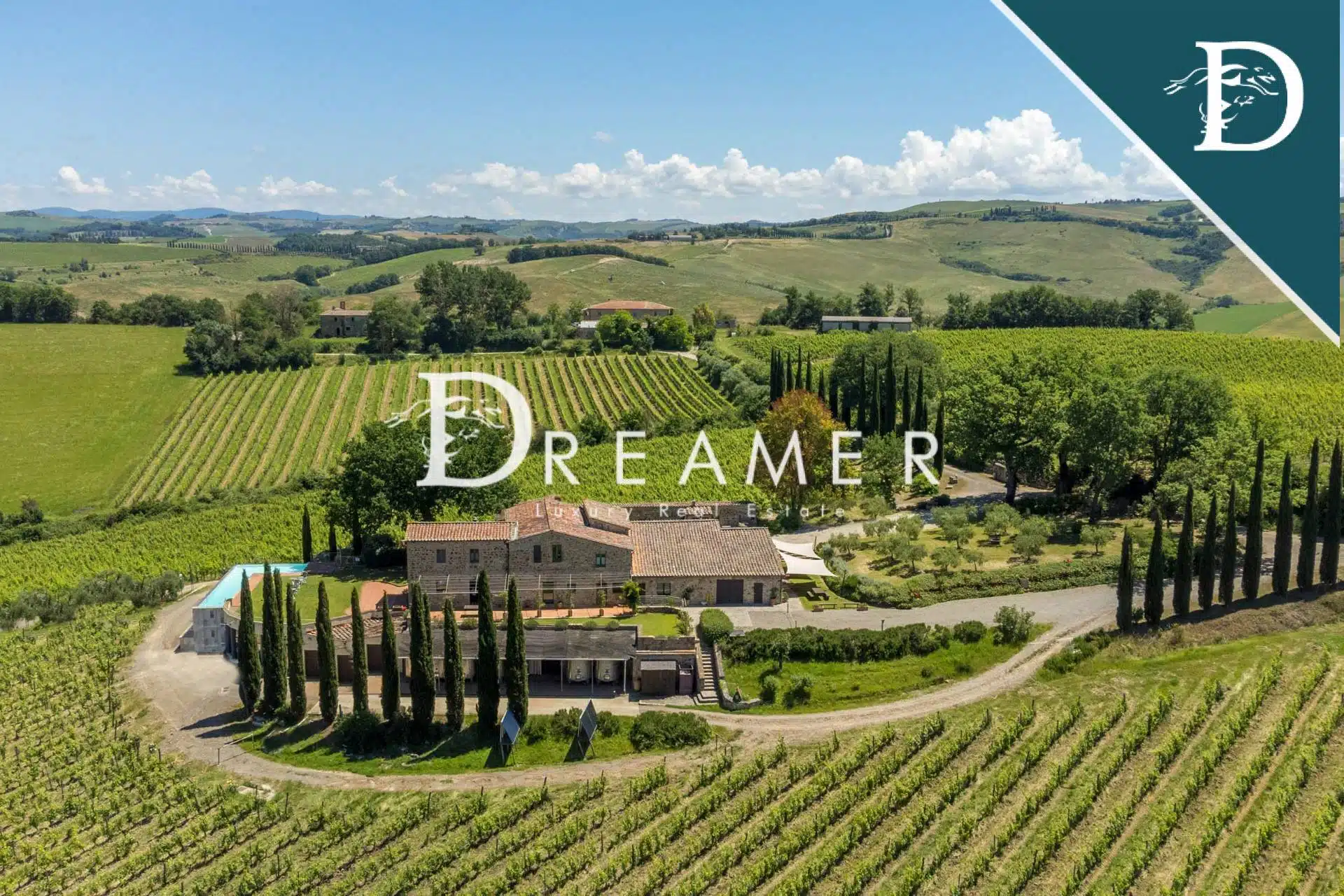 The property is composed of a main farmhouse and an annex. For a total of approximately 490 sqm with 8 bedrooms and 8 bathrooms, to which are added approximately 540 sqm of spaces used as cellars and warehouses. Outside, the property is surrounded by a 5-hectare vineyard that produces an excellent Brunello di Montalcino: one of the most prized wines in the world.