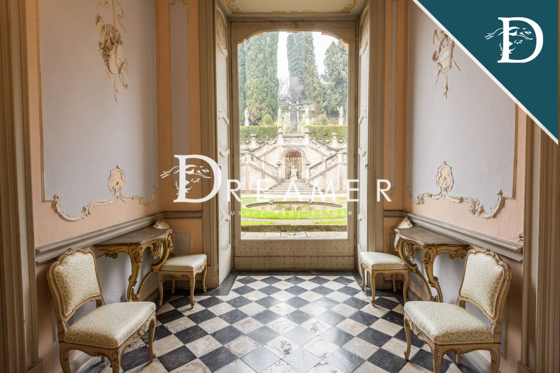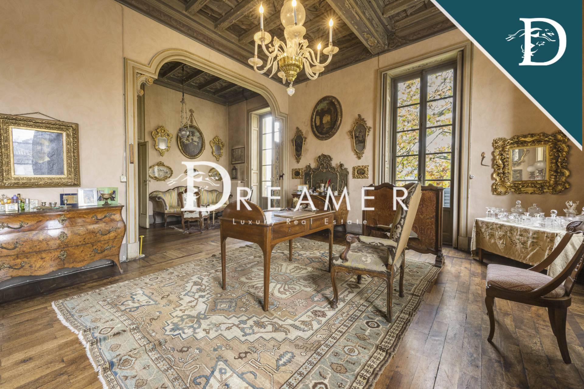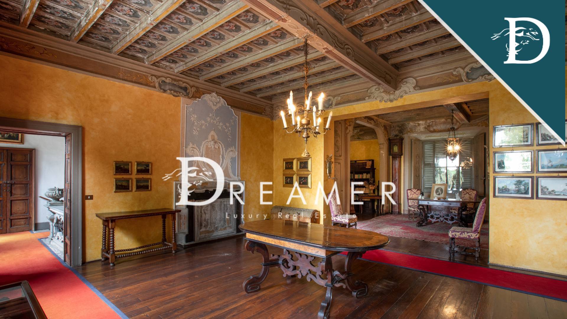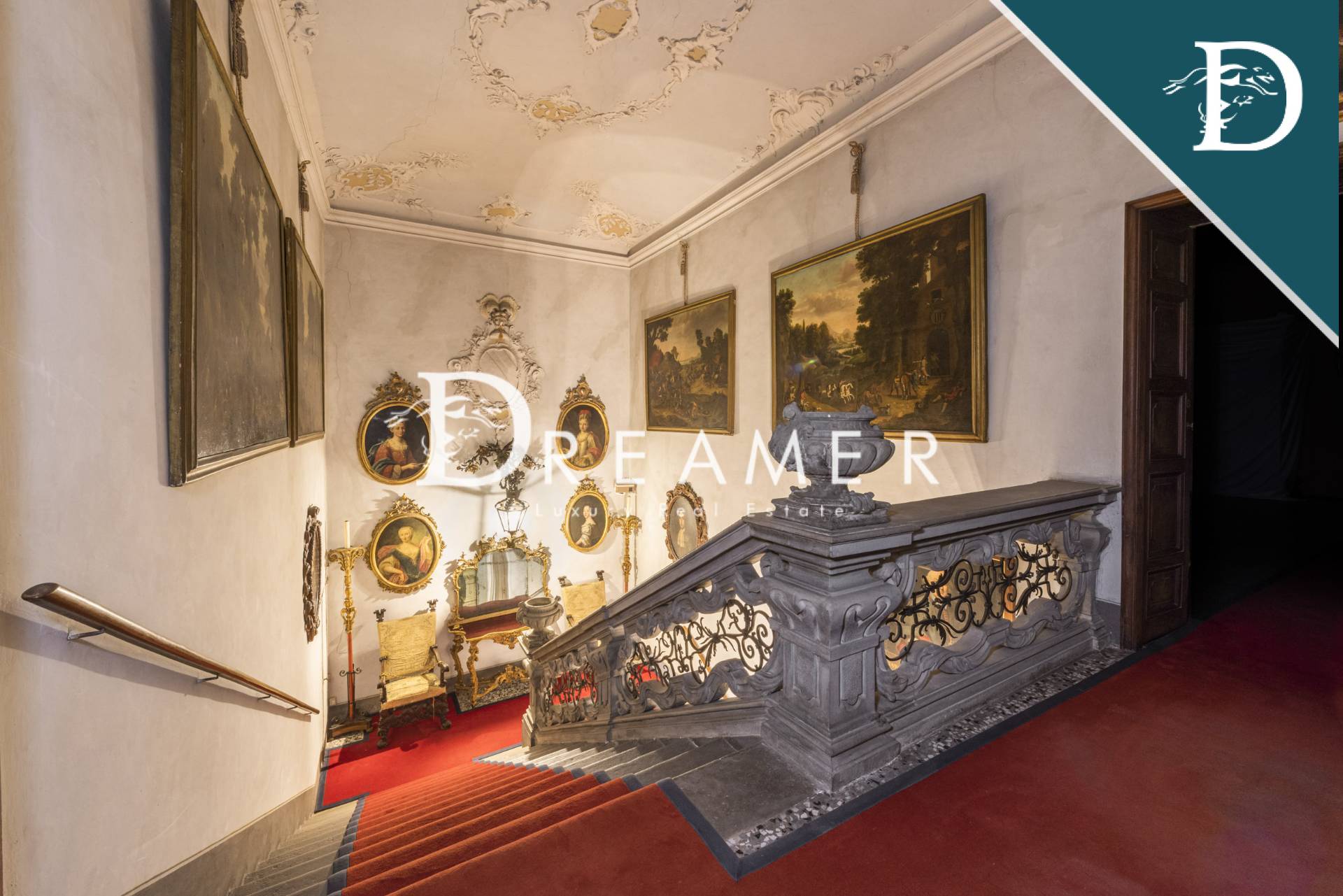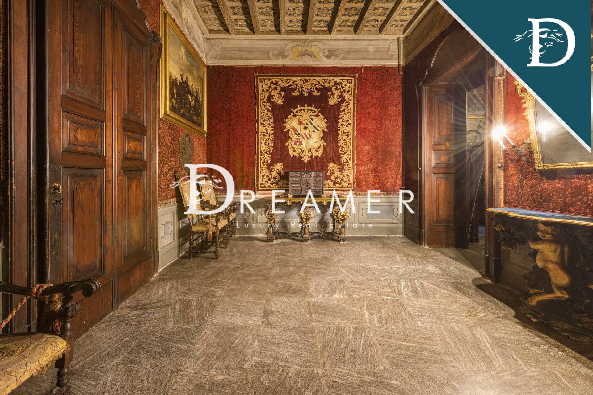 Step inside to discover a world of historic opulence, where frescoed ceilings, original wood paneling, and antique terracotta floors tell centuries of splendor. The grand reception halls exude timeless allure, their walls adorned with exquisitely crafted stuccoes and period artwork. Majestic stone staircases lead to sumptuous living quarters, each imbued with the grace of a bygone era. With every archway, coffered ceiling, and elaborately carved cornice, this villa stands as a testament to the artistry and meticulous craftsmanship of Italy’s golden age.