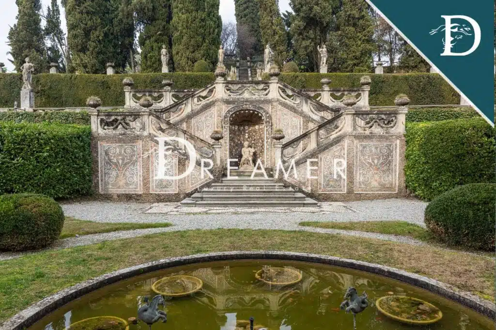 Beyond the villa’s stately façade lies an enchanting landscape: 18-hectare park featuring a 19th-century English garden and a classic Italian garden where centuries-old trees frame captivating garden paths. A pristine swimming pool, seamlessly integrated into the estate’s lush setting, offers an oasis of relaxation, while the symphony of gently flowing fountains and sculpted greenery evokes an atmosphere of timeless serenity. The carefully preserved garden provides scenic lakes and winding trails, culminating in symmetrical flower beds and classical charm. A private chapel, adorned with sacred artifacts, reflects the villa’s enduring connection to one of Italy’s most prominent noble lineages.