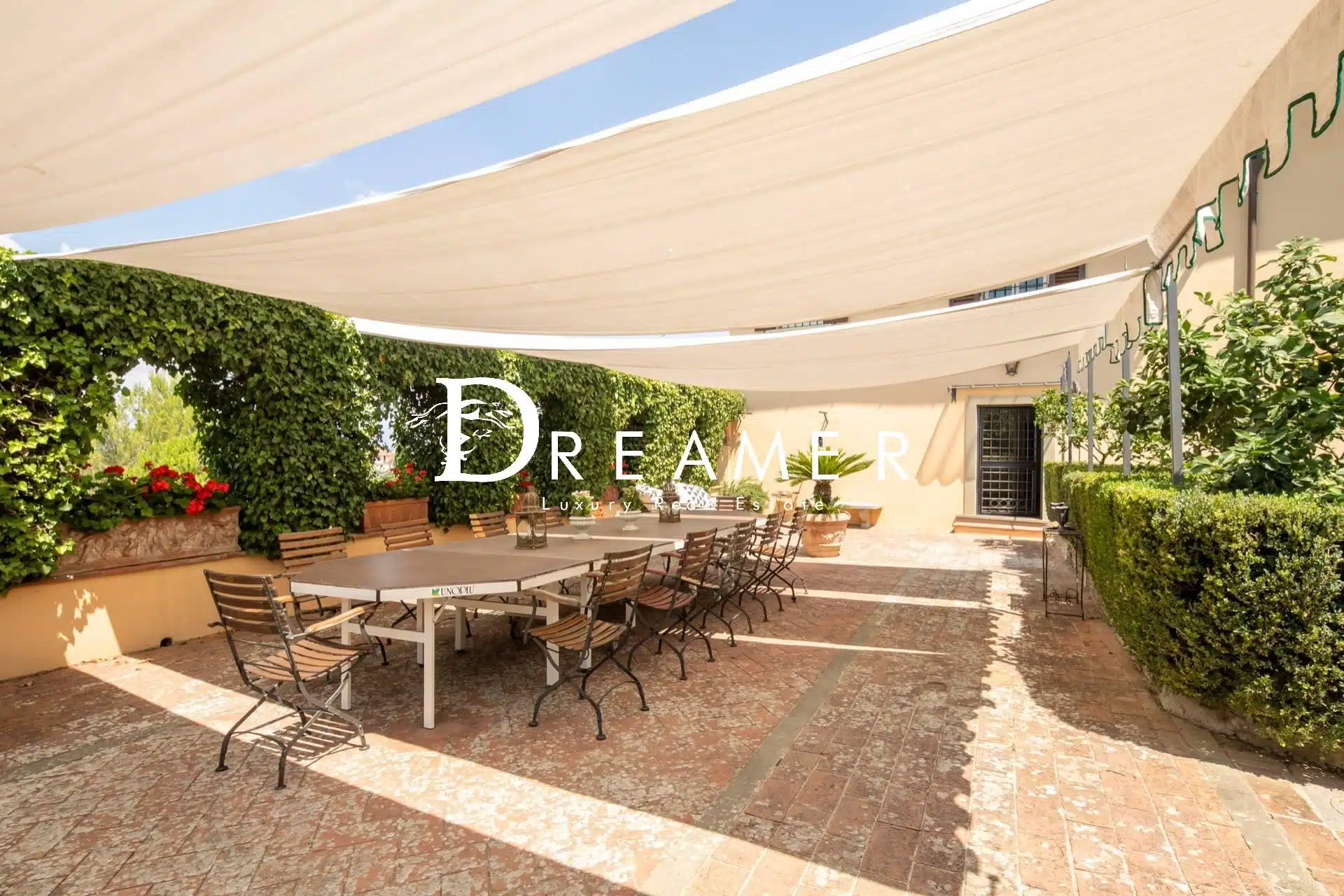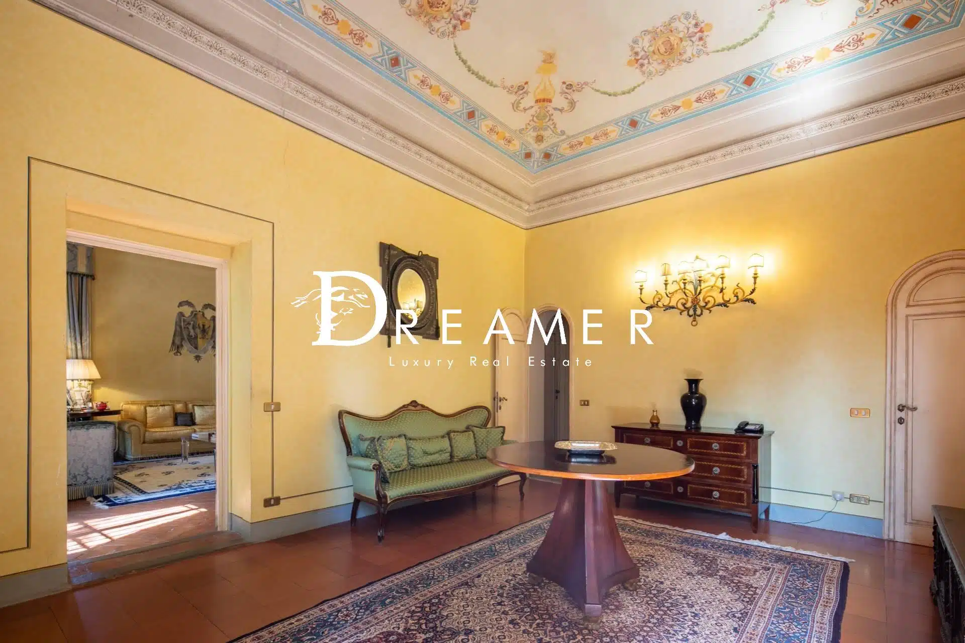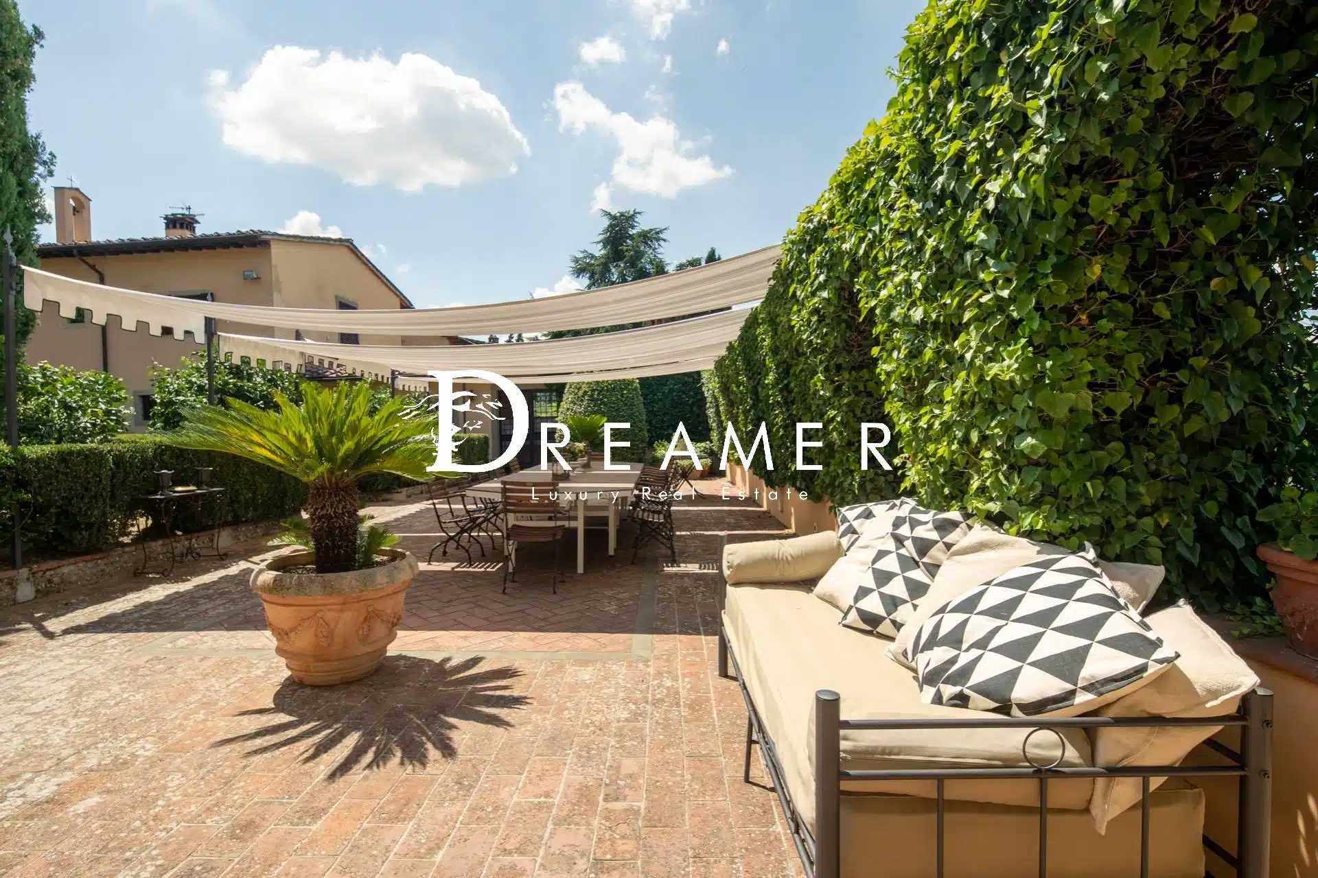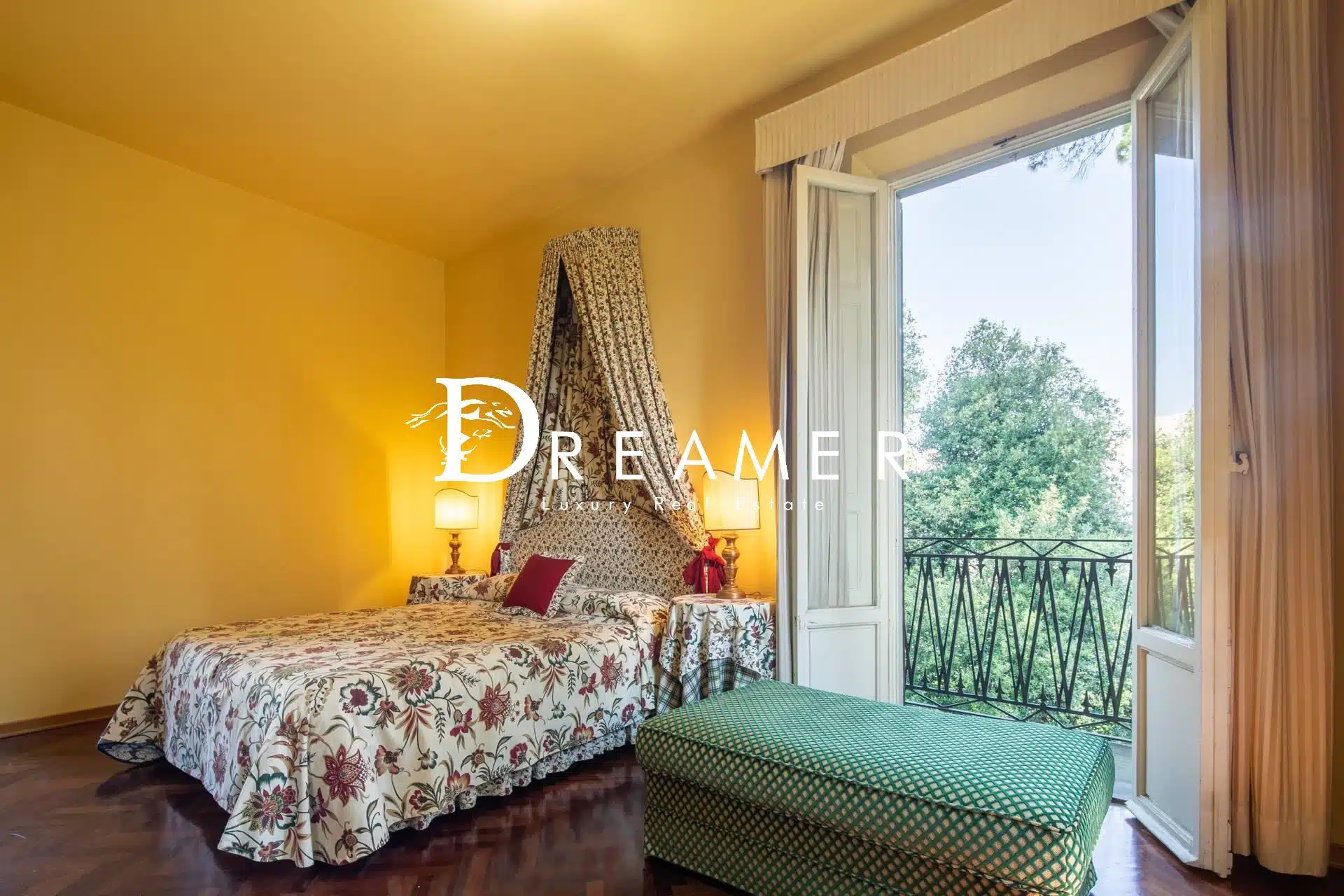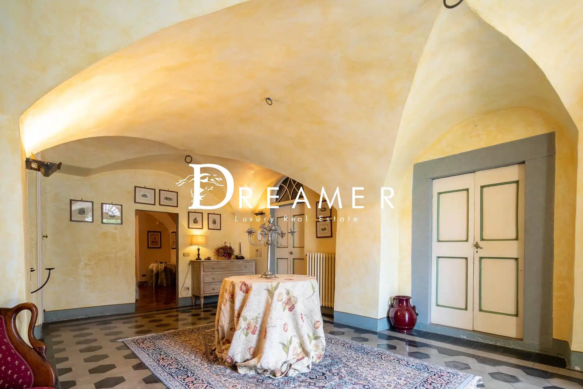 Historical Villa for sale, just 7 km from the city of Florence. The main body is spread over an area of 1,000 m2. Currently composed of 5 double bedrooms, 5 ensuite bathrooms. Large outbuilding of 500 square meters, divided into three recently renovated apartments, each comprising kitchen, living room, 2 bedrooms, and 2 bathrooms, with independent entrances.