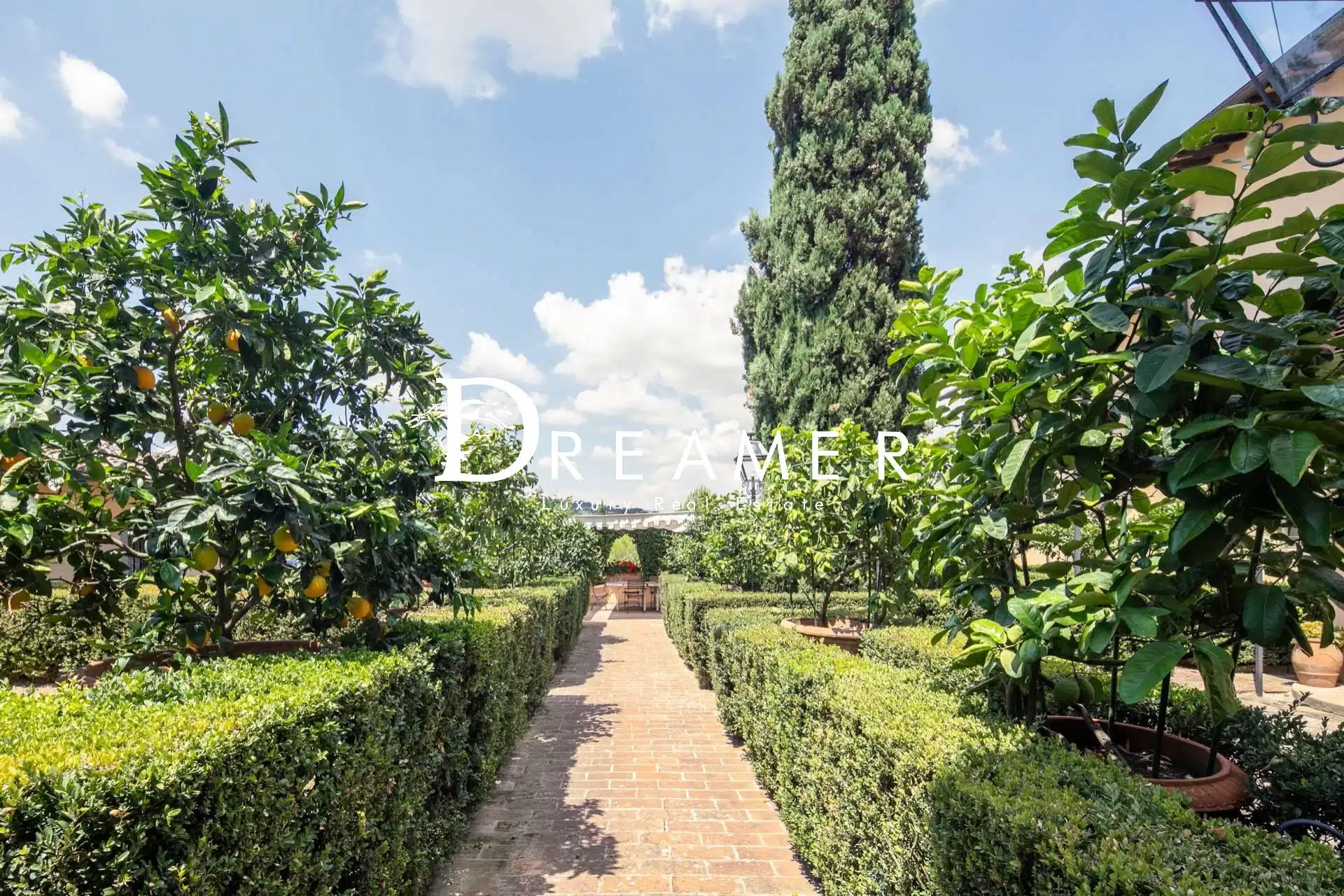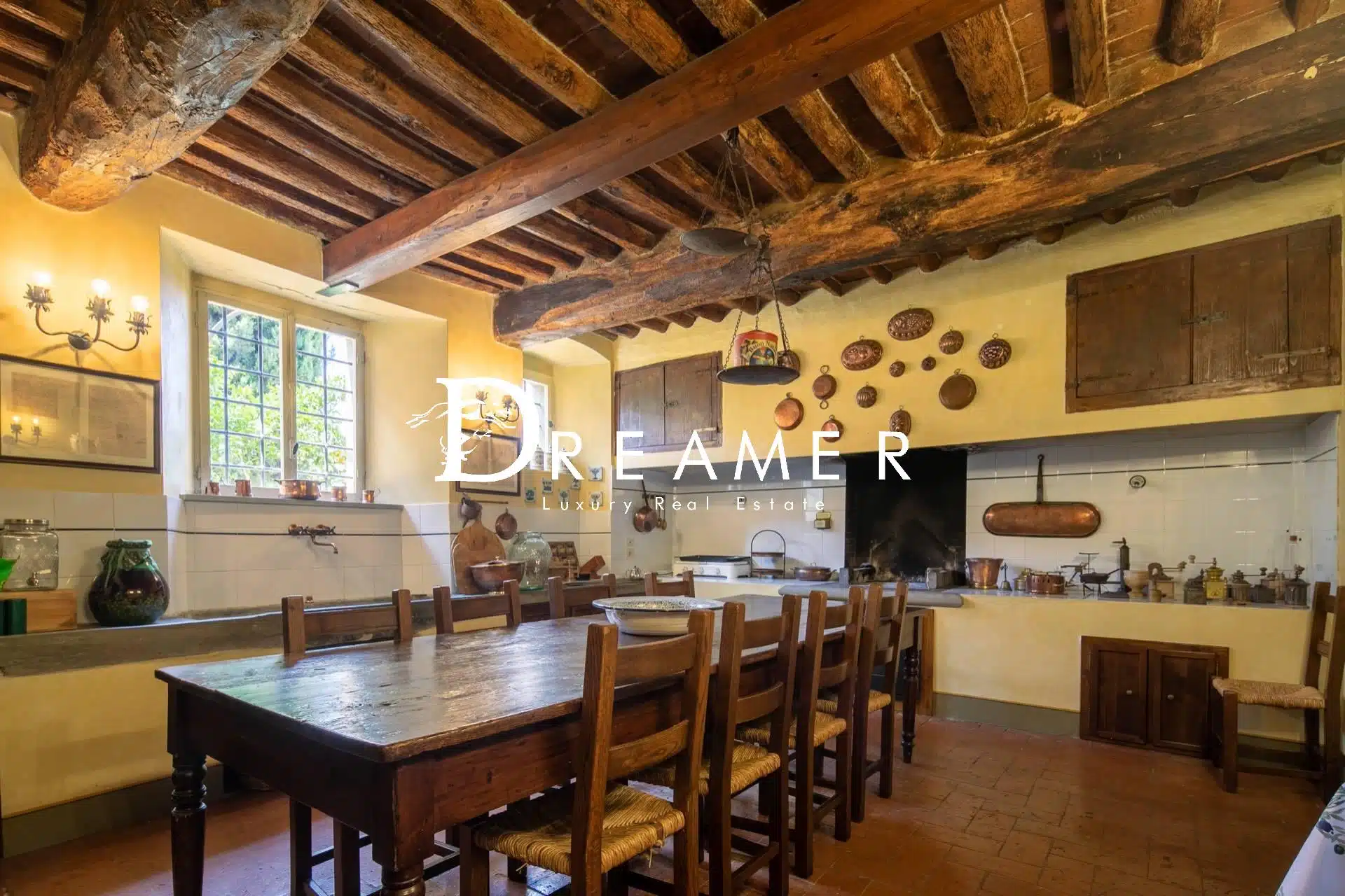 In the main hall of the villa, we find an ancient fresco attributed to Luca Giordano, a famous Italian painter of the 1600s. Enchanting Italian garden, finely cared for and embellished with imposing potted lemons and typical Tuscan plants, a beautiful area and internal courtyard, dedicated for outdoor lunches and dinners.