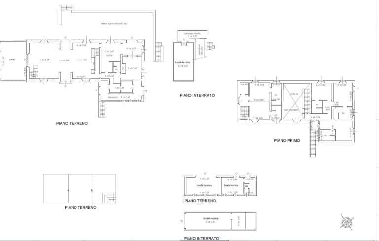 The main farmhouse is composed on the ground floor of a large dining room with a large fireplace and a reception room with access to the covered outdoor dining area. We also find here a fully equipped kitchen, a library with a fireplace, a guest bathroom, a service entrance with a laundry room and a storage room. On the first floor is the sleeping area, consisting of 4 bedrooms with private bathrooms and two covered terraces. An additional room is connected to this floor, which includes a bedroom with a bathroom and a small kitchen. The external stairs of the farmhouse lead to the basement, where there is a cellar and storage rooms/warehouses.